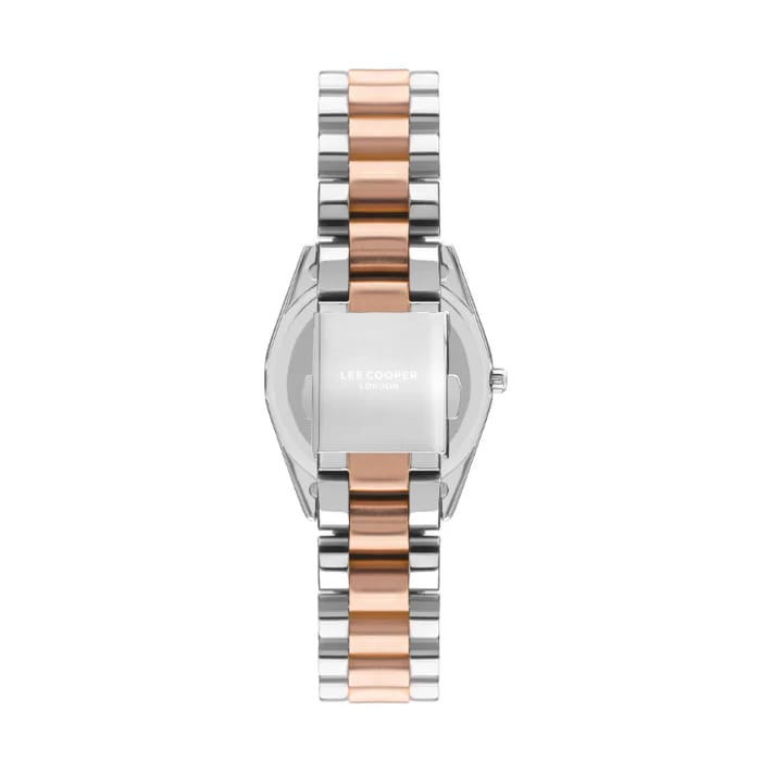 Женские наручные часы Lee Cooper LC07478.540 — это элегантная модель с утончённым дизайном. Корпус диаметром 34 мм выполнен из суперметалла, что придаёт часам изысканный вид. Перламутровый циферблат украшен изящными метками и стрелками, обеспечивая удобное считывание времени. Циферблат защищён минеральным стекломМинеральное стеклоМинеральное стекло представляет собой искусственно выращенный минерал кварца. Такое стекло отличается особой устойчивостью к повреждениям и царапинам. Уступает по некоторым качествам сапфировому стеклу., устойчивым к царапинам. Часы работают на кварцевом механизме, обеспечивая точность хода. Браслет из нержавеющей стали с раскладной застёжкойРаскладная застёжкаТакой тип застёжки используется только на браслетах из металла. Она никогда не раскрывается полностью, происходит разделение на 2 и более частей. Раскладывающая застёжка снизит вероятность потери часов к минимуму. гарантирует комфортное ношение и надёжную фиксацию на запястье. Водозащита WR30 защищает часы от случайных брызг и дождя, делая их подходящими для повседневного использования.