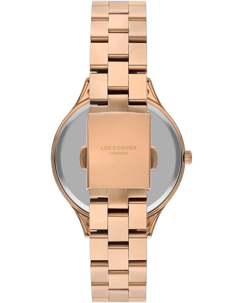 Женские наручные часы Lee Cooper LC07568.410 — это изысканная модель, сочетающая элегантный дизайн и практичность. Корпус диаметром 36 мм выполнен из суперметалла, золотистый безельБезельВнешний ободок, закрепляющий стекло. В спортивных часах так называется поворотное кольцо с делениями на циферблате, выполняет роль таймера – замеряет отрезки времени на шкале. Неподвижный безель – элемент декора. Однонаправленно вращающийся безель на дайверских часах позволяет фиксировать моменты погружения и выныривания на поверхность. из нержавеющей стали с IP-покрытиемIP-покрытиеМетод ионного напыления. Демонстрирует повышенную устойчивость к истиранию, окислению и химическим веществам. Под воздействием высокого давления и температуры около 1500°C молекулы металла надёжно соединяются с частицами корпуса часов. обеспечивает долговечность и надежность. Модель оснащена надёжным кварцевым механизмом, обеспечивающим точность и долговечность. Минеральное стеклоМинеральное стеклоМинеральное стекло представляет собой искусственно выращенный минерал кварца. Такое стекло отличается особой устойчивостью к повреждениям и царапинам. Уступает по некоторым качествам сапфировому стеклу. защищает циферблат от повреждений и царапин, сохраняя его презентабельный вид. Водонепроницаемость 30 метров защищает часы от случайных брызг, что делает их подходящими для повседневных ситуаций, таких как мытьё рук или прогулки под лёгким дождём. Раскладная застёжкаРаскладная застёжкаТакой тип застёжки используется только на браслетах из металла. Она никогда не раскрывается полностью, происходит разделение на 2 и более частей. Раскладывающая застёжка снизит вероятность потери часов к минимуму. обеспечивает удобную посадку и надёжность при ношении. В целом, эти часы являются отличным выбором для тех, кто ищет аксессуар, объединяющий классический стиль, уникальное цветовое решение и функциональность. Их гармоничное сочетание серебристых и золотистых оттенков с элегантным зелёным циферблатом и качественным механизмом делает их идеальным дополнением к любому гардеробу — от официального до повседневного.
