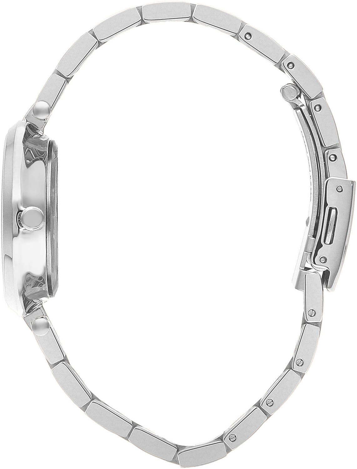 Женские часы Lee Cooper LC07591.530 — это стильное сочетание элегантности и современного дизайна. Круглый корпус диаметром 33 мм выполнен из суперметалла серебристого цвета. Циферблат инкрустирован цирконами, что придает модели особый блеск и защищен минеральным стекломМинеральное стеклоМинеральное стекло представляет собой искусственно выращенный минерал кварца. Такое стекло отличается особой устойчивостью к повреждениям и царапинам. Уступает по некоторым качествам сапфировому стеклу., обеспечивающим устойчивость к царапинам. Центральные часовая, минутная и секундная стрелки. Часы оснащены надежным кварцевым механизмом, источник питания - батарейка. Металлический браслет с IP-покрытиемIP-покрытиеМетод ионного напыления. Демонстрирует повышенную устойчивость к истиранию, окислению и химическим веществам. Под воздействием высокого давления и температуры около 1500°C молекулы металла надёжно соединяются с частицами корпуса часов. цвета розовое золото на раскладной застёжкеРаскладная застёжкаТакой тип застёжки используется только на браслетах из металла. Она никогда не раскрывается полностью, происходит разделение на 2 и более частей. Раскладывающая застёжка снизит вероятность потери часов к минимуму. гарантирует комфортную посадку на запястье. Водозащита 30 метров защищает модель от случайных брызг и дождя. Lee Cooper  — отличный выбор для тех, кто ценит утонченность и качество.