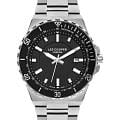 Мужские кварцевые часы Lee Cooper LC07622.350 — это стильный аксессуар с классическим дизайном и спортивными акцентами. Корпус диаметром 45 мм выполнен из суперметалла. Безель с IP-покрытиемIP-покрытиеМетод ионного напыления. Демонстрирует повышенную устойчивость к истиранию, окислению и химическим веществам. Под воздействием высокого давления и температуры около 1500°C молекулы металла надёжно соединяются с частицами корпуса часов.. Циферблат чёрного цвета оформлен индексами и дополнен окошком даты в положении 3 часов. Шкала тахиметраТахиметрРазмеченная шкала, располагается на ободке или безеле часов. Тахиметр позволяет рассчитать скорость на определённом участке пути, расстояние измеряется в километрах или милях. на безеле позволяет измерять среднюю скорость. Циферблат защищён минеральным стекломМинеральное стеклоМинеральное стекло представляет собой искусственно выращенный минерал кварца. Такое стекло отличается особой устойчивостью к повреждениям и царапинам. Уступает по некоторым качествам сапфировому стеклу.. Стрелки и метки с люминесцентным покрытиемЛюминесцентное покрытиеПозволяет считывать показания времени в темноте. Производители наносят на стрелки, часовые индексы, безель или поверхность циферблата светонакопительный состав, дающий холодное свечение., обеспечивающим хорошую читаемость в темноте. Часы оснащены стальным браслетом на раскладной застёжкеРаскладная застёжкаТакой тип застёжки используется только на браслетах из металла. Она никогда не раскрывается полностью, происходит разделение на 2 и более частей. Раскладывающая застёжка снизит вероятность потери часов к минимуму.. Водонепроницаемость 50 м позволяет использовать часы для плавания и повседневного ношения. Универсальный выбор для тех, кто ценит надёжность и выразительный стиль.