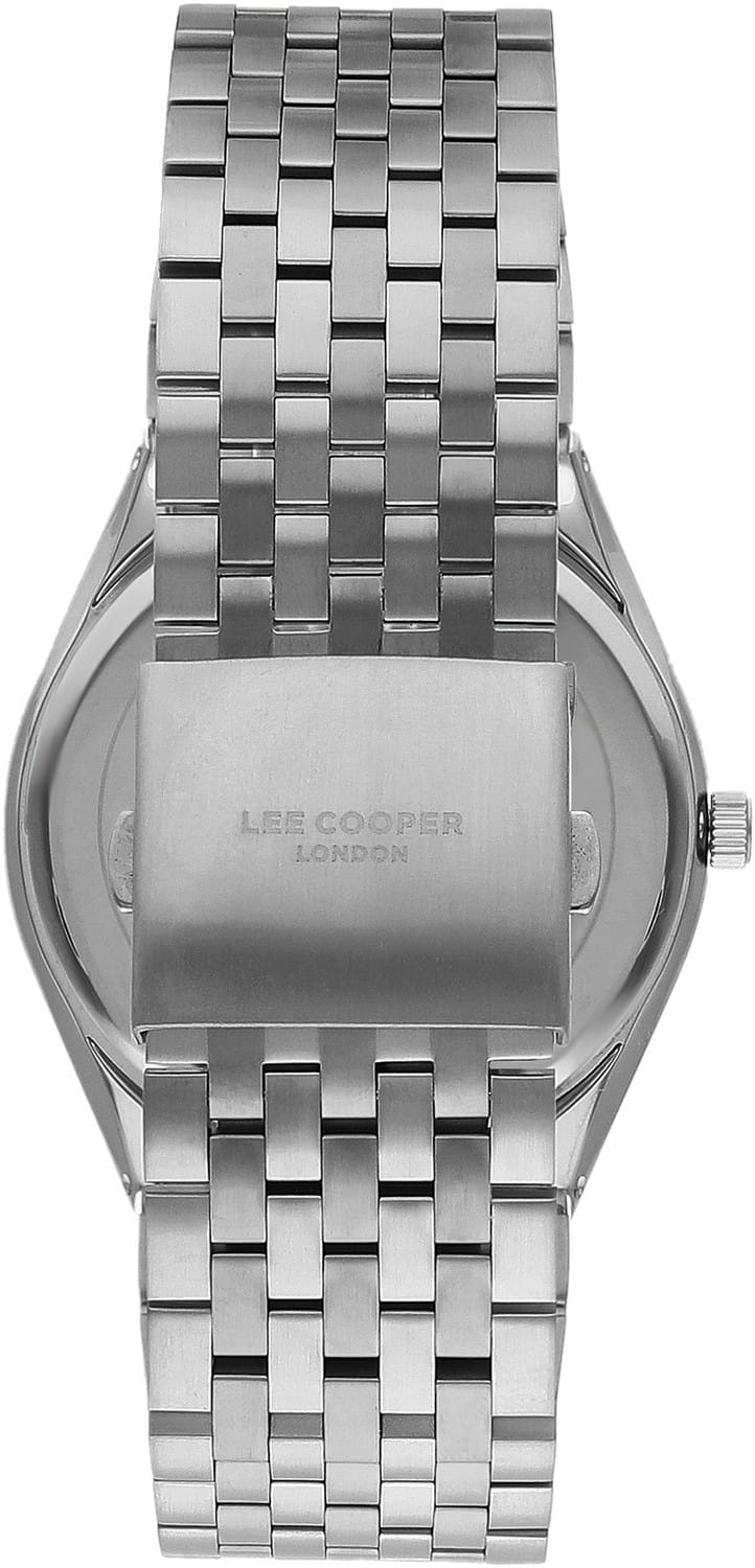 Мужские часы Lee Cooper LC07630.370 – это стильная модель, которая сочетает в себе современный дизайн и высокую функциональность. Часы идеально подходят для ежедневного ношения и могут стать отличным дополнением к любому наряду. Элегантный корпус часов диаметром 44 мм выполнен из суперметалла, придающий модели особый блеск. Минеральное стеклоМинеральное стеклоМинеральное стекло представляет собой искусственно выращенный минерал кварца. Такое стекло отличается особой устойчивостью к повреждениям и царапинам. Уступает по некоторым качествам сапфировому стеклу. защищает изысканный циферблат от царапин, сохраняя его безупречный вид. Циферблат дополнен аккуратными метками и стрелками с люминесцентным покрытиемЛюминесцентное покрытиеПозволяет считывать показания времени в темноте. Производители наносят на стрелки, часовые индексы, безель или поверхность циферблата светонакопительный состав, дающий холодное свечение., что гарантирует читаемость даже в условиях недостаточного освещения. Часы оснащены функцией отображения даты на позиции «3 часа».  Механизм часов гарантирует точный ход и надежную работу, а надежный браслет из нержавеющей стали с раскладной застёжкойРаскладная застёжкаТакой тип застёжки используется только на браслетах из металла. Она никогда не раскрывается полностью, происходит разделение на 2 и более частей. Раскладывающая застёжка снизит вероятность потери часов к минимуму. обеспечивает комфортную фиксацию на запястье. Модель LC07630.370 станет прекрасным выбором для тех, кто ценит стиль и качество в аксессуарах.
