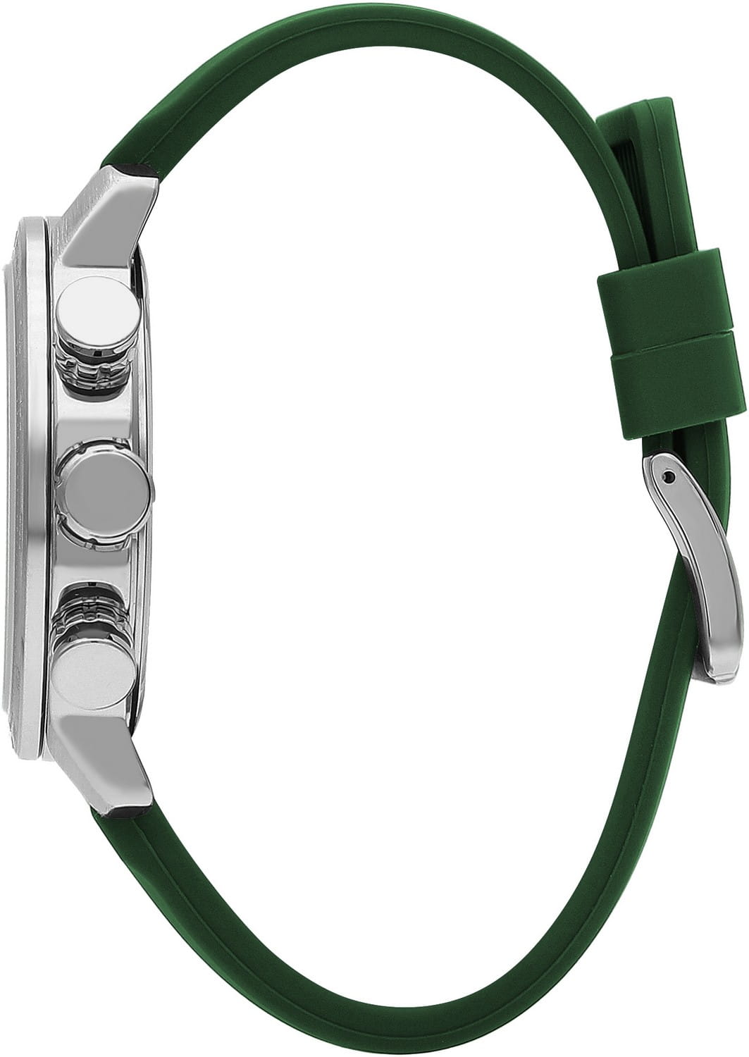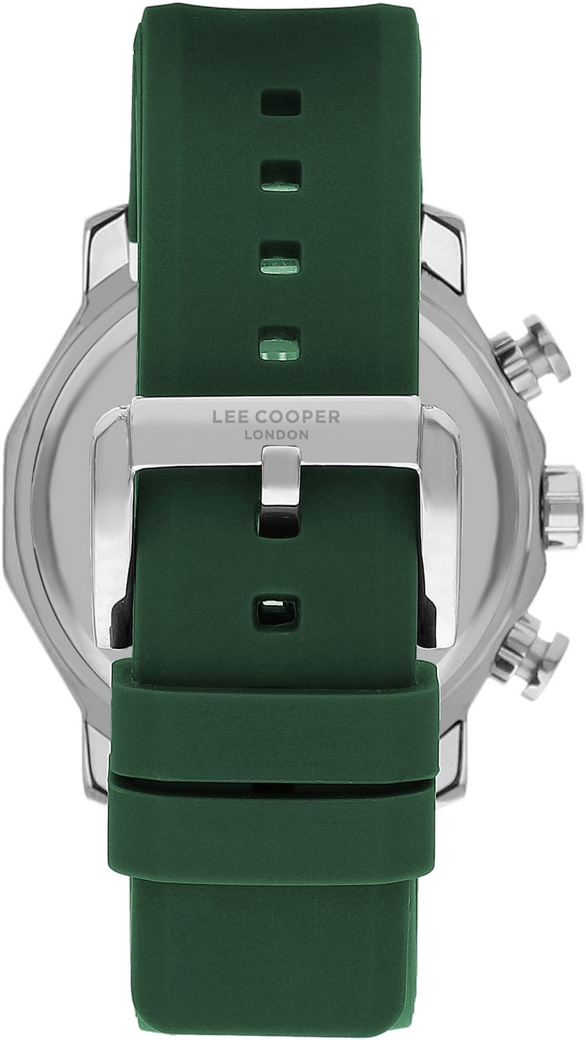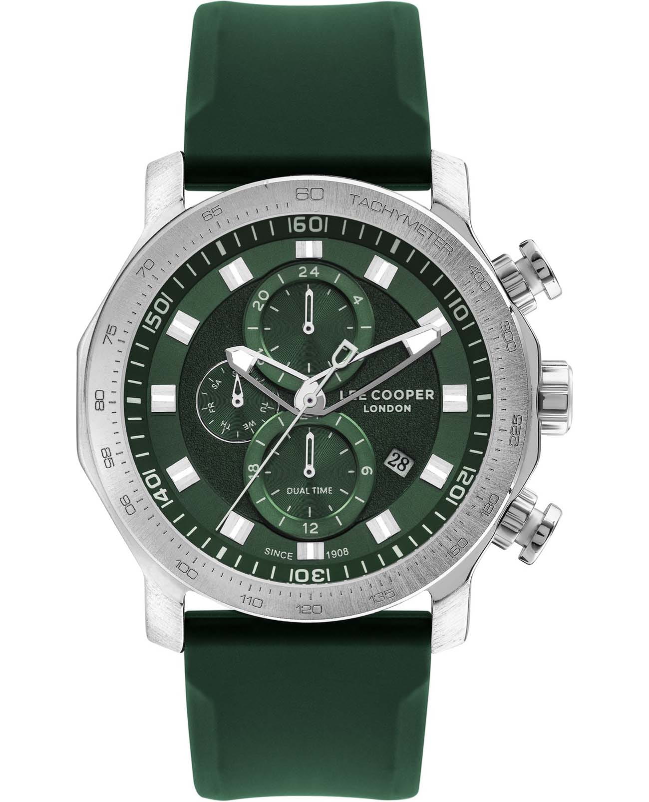 Lee Cooper LC07631.377  — элегантная модель с функциональными возможностями для повседневного использования. Корпус из суперметалла диаметром 49 мм придаёт часам классический и современный вид. Циферблат защищён минеральным стекломМинеральное стеклоМинеральное стекло представляет собой искусственно выращенный минерал кварца. Такое стекло отличается особой устойчивостью к повреждениям и царапинам. Уступает по некоторым качествам сапфировому стеклу., устойчивым к царапинам, хорошо может выдержать небольшие удары и падения. Стильный циферблат оформлен изысканными индексами и дополнен окошками даты, дня недели и 24-часового индикатора, а также аккуратными метками и стрелками с люминесцентным покрытиемЛюминесцентное покрытиеПозволяет считывать показания времени в темноте. Производители наносят на стрелки, часовые индексы, безель или поверхность циферблата светонакопительный состав, дающий холодное свечение., что гарантирует читаемость даже в условиях недостаточного освещения. Функция второго часового поясаВторой часовой поясФункция, позволяющая отображать время двух часовых поясов одновременно. делает часы удобными для путешественников. Часы работают на кварцевом механизме, обеспечивающем точность хода. Каучуковый ремешок на стандартной застёжке гарантирует удобную посадку и надёжную фиксацию на запястье. Водозащита 50 метров защищает часы от брызг и дождя, делая их подходящими для повседневного использования.