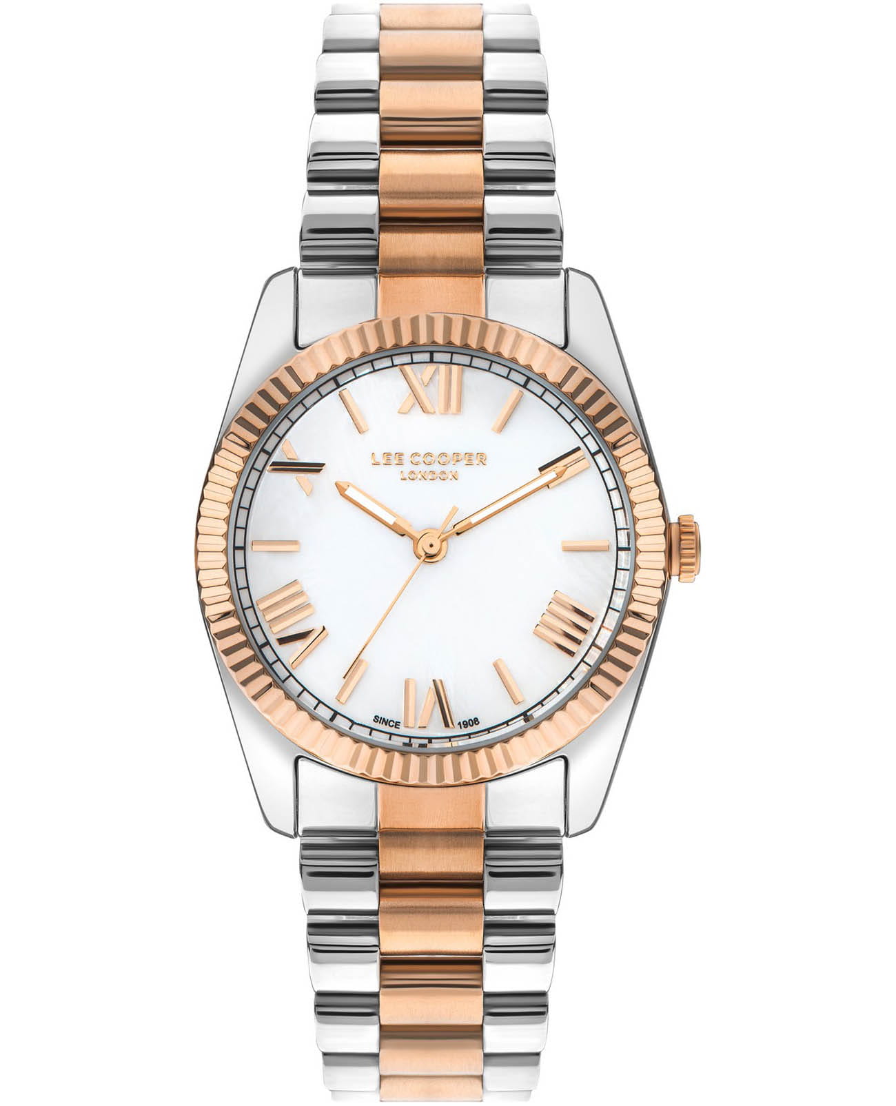 Женские часы Lee Cooper LC07825.520 выполнены в классическом стиле и сочетают строгий дизайн с надёжным механизмом. Модель оснащена кварцевым механизмом, обеспечивающим точность хода и минимальное обслуживание. Корпус с диаметром 36 мм, изготовлен из суперметалла с изысканным неподвижным безелемБезельВнешний ободок, закрепляющий стекло. В спортивных часах так называется поворотное кольцо с делениями на циферблате, выполняет роль таймера – замеряет отрезки времени на шкале. Неподвижный безель – элемент декора. Однонаправленно вращающийся безель на дайверских часах позволяет фиксировать моменты погружения и выныривания на поверхность. с IP-покрытиемIP-покрытиеМетод ионного напыления. Демонстрирует повышенную устойчивость к истиранию, окислению и химическим веществам. Под воздействием высокого давления и температуры около 1500°C молекулы металла надёжно соединяются с частицами корпуса часов., гарантирует комфорт при ношении. Изящный циферблат дополнен штрихами и римскими цифрами для чёткого отсчёта времени. Защиту циферблата обеспечивает минеральное стеклоМинеральное стеклоМинеральное стекло представляет собой искусственно выращенный минерал кварца. Такое стекло отличается особой устойчивостью к повреждениям и царапинам. Уступает по некоторым качествам сапфировому стеклу., устойчивое к мелким механическим повреждениям. Стальной браслет с частичным IP-покрытиемIP-покрытиеМетод ионного напыления. Демонстрирует повышенную устойчивость к истиранию, окислению и химическим веществам. Под воздействием высокого давления и температуры около 1500°C молекулы металла надёжно соединяются с частицами корпуса часов. на раскладной застёжкеРаскладная застёжкаТакой тип застёжки используется только на браслетах из металла. Она никогда не раскрывается полностью, происходит разделение на 2 и более частей. Раскладывающая застёжка снизит вероятность потери часов к минимуму. гарантирует удобную посадку и надёжную фиксацию на запястье. Стрелки с люминесцентным покрытиемЛюминесцентное покрытиеПозволяет считывать показания времени в темноте. Производители наносят на стрелки, часовые индексы, безель или поверхность циферблата светонакопительный состав, дающий холодное свечение., обеспечивающим хорошую читаемость в темноте. Водозащита 30WR позволяет использовать часы в повседневных условиях без риска повреждения от случайных брызг воды. Это сочетание классического дизайна, прочности материалов и качества исполнения для уверенных в себе женщин.