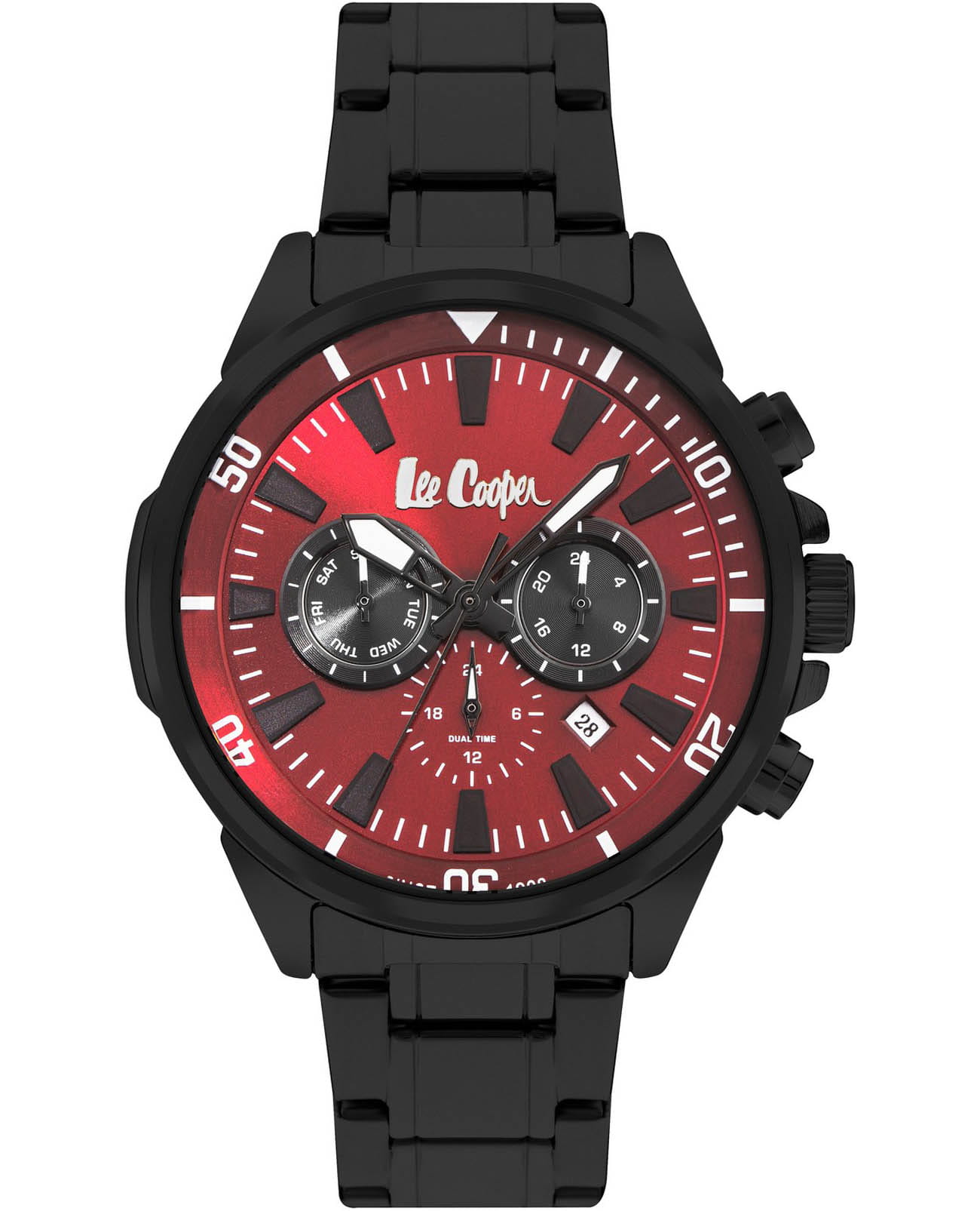 Мужские наручные часы Lee Cooper LC07846.680 оснащены кварцевым механизмом, обеспечивающий высокую точность хода и надежность. Элегантный корпус часов выполнен из суперметалла с IP-покрытиемIP-покрытиеМетод ионного напыления. Демонстрирует повышенную устойчивость к истиранию, окислению и химическим веществам. Под воздействием высокого давления и температуры около 1500°C молекулы металла надёжно соединяются с частицами корпуса часов. черного цвета, что делает их устойчивыми к внешним воздействиям и придает благородный вид. Циферблат украшен стрелками и метками с люминесцентным покрытиемЛюминесцентное покрытиеПозволяет считывать показания времени в темноте. Производители наносят на стрелки, часовые индексы, безель или поверхность циферблата светонакопительный состав, дающий холодное свечение., гармонично дополняющим общий дизайн модели. Для защиты циферблата используется минеральное стеклоМинеральное стеклоМинеральное стекло представляет собой искусственно выращенный минерал кварца. Такое стекло отличается особой устойчивостью к повреждениям и царапинам. Уступает по некоторым качествам сапфировому стеклу., устойчивое к царапинам и механическим повреждениям. Корпус имеет круглую форму диаметром 46 мм, что делает часы заметными и подходящими. Браслет из стали с IP-покрытиемIP-покрытиеМетод ионного напыления. Демонстрирует повышенную устойчивость к истиранию, окислению и химическим веществам. Под воздействием высокого давления и температуры около 1500°C молекулы металла надёжно соединяются с частицами корпуса часов. черного цвета оснащен раскладной застёжкойРаскладная застёжкаТакой тип застёжки используется только на браслетах из металла. Она никогда не раскрывается полностью, происходит разделение на 2 и более частей. Раскладывающая застёжка снизит вероятность потери часов к минимуму., обеспечивающим комфортное и безопасное ношение. Вынесенный циферблат с 24-х часовым указателем времени, дня недели и вторым часовым поясомВторой часовой поясФункция, позволяющая отображать время двух часовых поясов одновременно.. Окошко даты находится в положении между 4 и 5 часов. Часы обладают водонепроницаемостью до 50 метров (5 АТМ), что позволяет использовать их в повседневной жизни, включая контакт с водой при мытье рук или дожде. Эти часы станут идеальным выбором для мужчин, ценящих стиль, качество и функциональность.