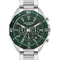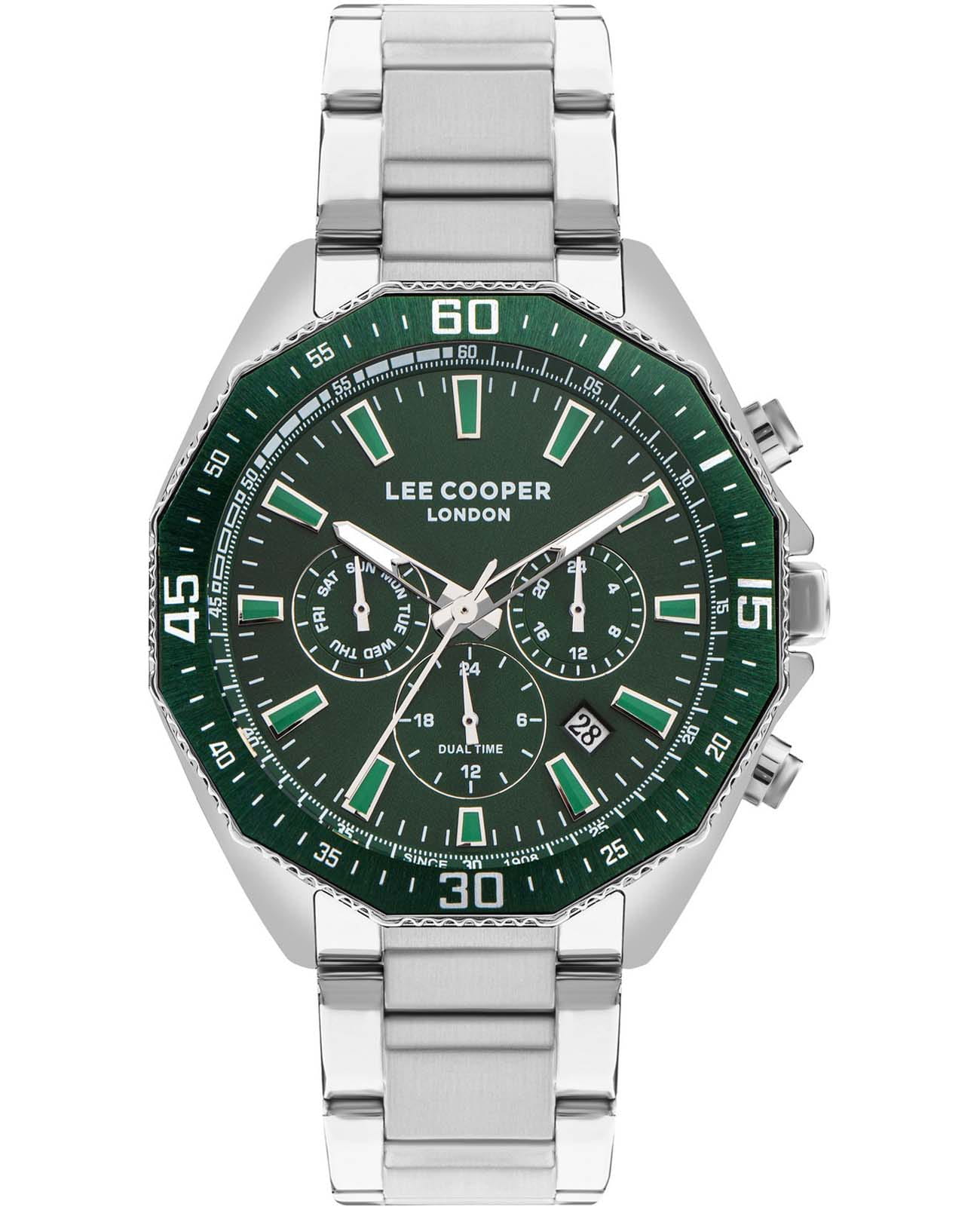 Мужские часы Lee Cooper LC07847.370 выполнены в классическом стиле и сочетают строгий дизайн с надёжным механизмом. Модель оснащена кварцевым механизмом, обеспечивающим точность хода и минимальное обслуживание. Корпус имеет размер 45 мм, изготовлен из суперметалла с поворотным безелемБезельВнешний ободок, закрепляющий стекло. В спортивных часах так называется поворотное кольцо с делениями на циферблате, выполняет роль таймера – замеряет отрезки времени на шкале. Неподвижный безель – элемент декора. Однонаправленно вращающийся безель на дайверских часах позволяет фиксировать моменты погружения и выныривания на поверхность. с IP-покрытиемIP-покрытиеМетод ионного напыления. Демонстрирует повышенную устойчивость к истиранию, окислению и химическим веществам. Под воздействием высокого давления и температуры около 1500°C молекулы металла надёжно соединяются с частицами корпуса часов.. Циферблат зеленого цвета дополнен индексами для чёткого отсчёта времени, а также функциями отображения даты, дня недели, 24-часового индикатора ивторого часового поясаВторой часовой поясФункция, позволяющая отображать время двух часовых поясов одновременно.. Защиту циферблата обеспечивает минеральное стеклоМинеральное стеклоМинеральное стекло представляет собой искусственно выращенный минерал кварца. Такое стекло отличается особой устойчивостью к повреждениям и царапинам. Уступает по некоторым качествам сапфировому стеклу., устойчивое к мелким механическим повреждениям. Циферблат украшен стрелками и метками с люминесцентным покрытиемЛюминесцентное покрытиеПозволяет считывать показания времени в темноте. Производители наносят на стрелки, часовые индексы, безель или поверхность циферблата светонакопительный состав, дающий холодное свечение., гармонично дополняющим общий дизайн модели. Браслет из стали оснащен раскладной застёжкойРаскладная застёжкаТакой тип застёжки используется только на браслетах из металла. Она никогда не раскрывается полностью, происходит разделение на 2 и более частей. Раскладывающая застёжка снизит вероятность потери часов к минимуму., обеспечивающим комфортное и безопасное ношение. Водозащита 5 АТМ позволяет использовать часы в повседневных условиях без риска повреждения от случайных брызг воды. Это сочетание классического дизайна, прочности материалов и качества исполнения для уверенных в себе мужчин.