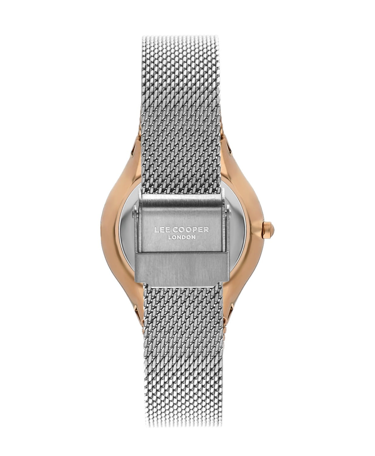 Женские часы Lee Cooper LC07862.530 — это стильное сочетание элегантности и современного дизайна. Изящный корпус диаметром 32 мм выполнен из суперметалла с IP-покрытиемIP-покрытиеМетод ионного напыления. Демонстрирует повышенную устойчивость к истиранию, окислению и химическим веществам. Под воздействием высокого давления и температуры около 1500°C молекулы металла надёжно соединяются с частицами корпуса часов. золотого цвета. Серый циферблат инкрустирован цирконами, что придает модели особый блеск и защищен минеральным стекломМинеральное стеклоМинеральное стекло представляет собой искусственно выращенный минерал кварца. Такое стекло отличается особой устойчивостью к повреждениям и царапинам. Уступает по некоторым качествам сапфировому стеклу., обеспечивающим устойчивость к царапинам. Центральные часовая, минутная стрелки. Часы оснащены надежным кварцевым механизмом. Стальной браслет с застежкой, выполненной в виде раскладного замкаРаскладной замокДанный вариант застежки используется только на часах с металлическим браслетом. Отличительная особенность такого крепления в том, что длина браслета становится универсальной и вы можете самостоятельно отрегулировать нужный вам размер – застежка просто двигается по браслету часов., гарантирующего комфортное и безопасное ношение. Водозащита 30 метров защищает модель от случайных брызг и дождя. Lee Cooper — отличный выбор для тех, кто ценит утонченность и качество.