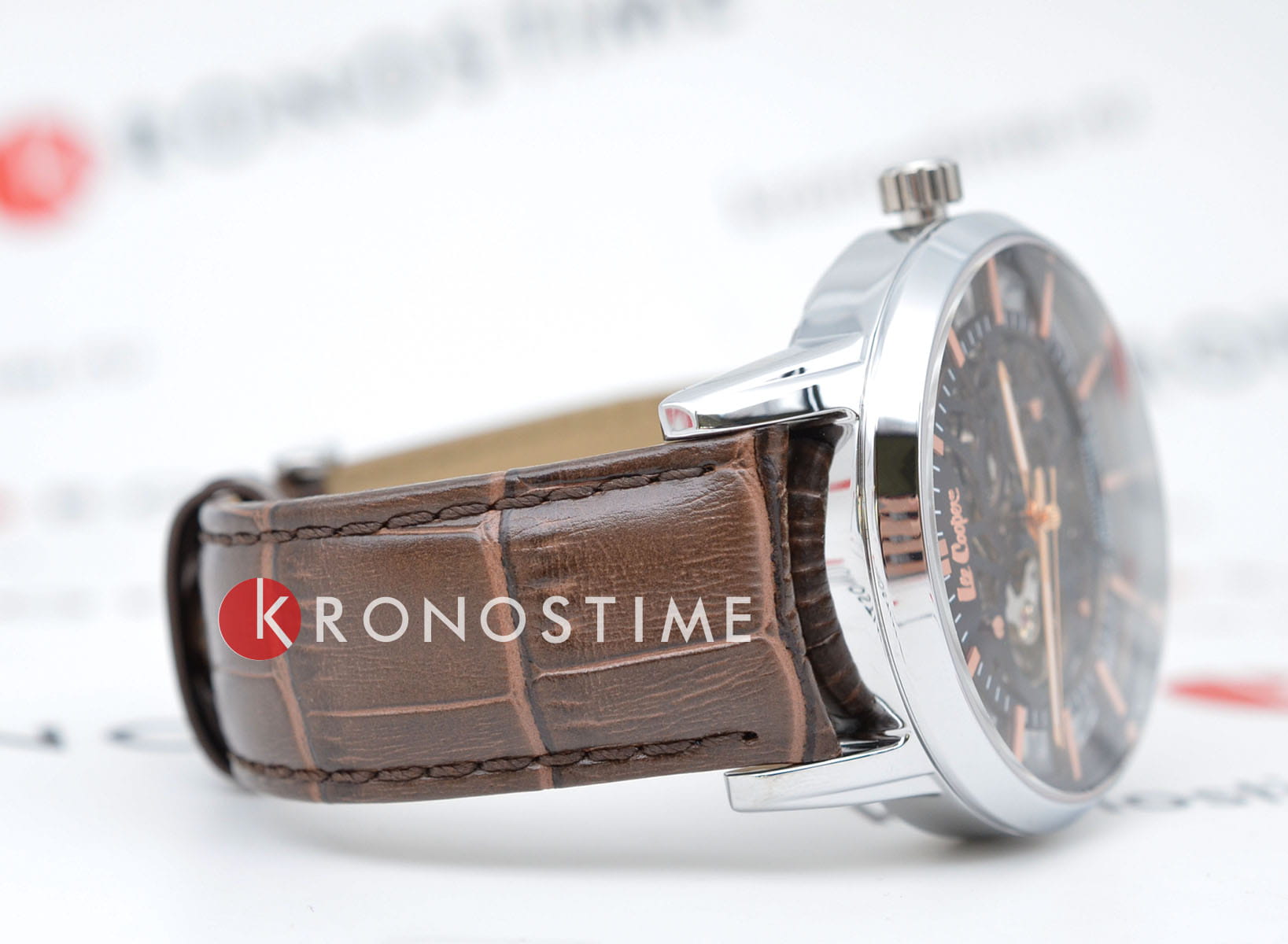 Мужские наручные часы Lee Cooper LC08035.344  — это стильная модель, сочетающая в себе современный дизайн и функциональность. Корпус часов выполнен из суперметалла серебристого цвета, что делает их устойчивыми к внешним воздействиям и придает благородный вид. Часы оснащены автоподзаводом калибра G3265ZH, который заряжается от движения руки и обеспечивает высокую точность хода. Коричневый циферблат украшен скелетонизированным дизайном, позволяющим наблюдать за работой механизма, что делает часы не только функциональными, но и визуально привлекательными. Для защиты циферблата используется минеральное стеклоМинеральное стеклоМинеральное стекло представляет собой искусственно выращенный минерал кварца. Такое стекло отличается особой устойчивостью к повреждениям и царапинам. Уступает по некоторым качествам сапфировому стеклу., устойчивое к царапинам и механическим повреждениям. Корпус имеет круглую форму диаметром 44 мм, что делает часы заметными и подходящими для повседневного ношения. Ремешок из натуральной кожи с тиснением "под крокодила". Застежка стандартная классическая. Модель обладает водонепроницаемостью до 50 метров (5 АТМ), что позволяет использовать часы в повседневной жизни, включая контакт с водой при мытье рук или дожде. Эти часы станут идеальным выбором для мужчин, ценящих стиль, качество и функциональность.