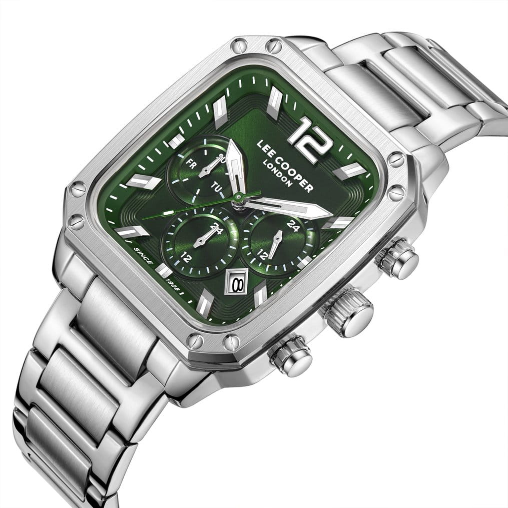 Мужские наручные часы Lee Cooper LC08182.370 оснащены кварцевым механизмом, обеспечивающий высокую точность хода и надежность. Элегантный корпус часов выполнен из суперметалла серебристого цвета, что делает их устойчивыми к внешним воздействиям и придает благородный вид. Циферблат украшен классическими стрелками и метками с люминесцентным покрытиемЛюминесцентное покрытиеПозволяет считывать показания времени в темноте. Производители наносят на стрелки, часовые индексы, безель или поверхность циферблата светонакопительный состав, дающий холодное свечение., гармонично дополняющим общий дизайн модели. Для защиты циферблата используется минеральное стеклоМинеральное стеклоМинеральное стекло представляет собой искусственно выращенный минерал кварца. Такое стекло отличается особой устойчивостью к повреждениям и царапинам. Уступает по некоторым качествам сапфировому стеклу., устойчивое к царапинам и механическим повреждениям. Корпус размером 39 мм x 49 мм, что делает часы заметными и подходящими. Стальной браслет на раскладной застёжкеРаскладная застёжкаТакой тип застёжки используется только на браслетах из металла. Она никогда не раскрывается полностью, происходит разделение на 2 и более частей. Раскладывающая застёжка снизит вероятность потери часов к минимуму. обеспечивает комфортное и безопасное ношение. Окошко даты находится в положении между 4 и 5 часов. Часы обладают водонепроницаемостью до 30 метров (3 АТМ), что позволяет использовать их в повседневной жизни, включая контакт с водой при мытье рук или дожде. Эти часы станут идеальным выбором для мужчин, ценящих стиль, качество и функциональность.