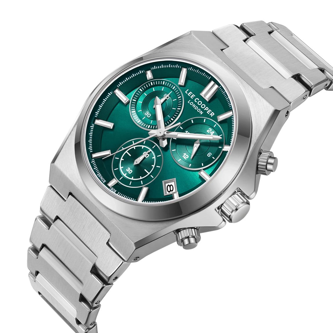 Мужские наручные часы-хронографХронографФункция позволяет измерять отрезки времени с особой точностью: часы, минуты, секунды. Верным признаком хронографа является наличие на циферблате 3 дополнительных окошек-счётчиков. Lee Cooper LC08188.300 оснащены кварцевым механизмом, обеспечивающий высокую точность хода и надежность. Элегантный корпус часов выполнен из суперметалла серебристого цвета, что делает их устойчивыми к внешним воздействиям и придает благородный вид. Циферблат украшен классическими стрелками и метками с люминесцентным покрытиемЛюминесцентное покрытиеПозволяет считывать показания времени в темноте. Производители наносят на стрелки, часовые индексы, безель или поверхность циферблата светонакопительный состав, дающий холодное свечение., гармонично дополняющим общий дизайн модели. Для защиты циферблата используется минеральное стеклоМинеральное стеклоМинеральное стекло представляет собой искусственно выращенный минерал кварца. Такое стекло отличается особой устойчивостью к повреждениям и царапинам. Уступает по некоторым качествам сапфировому стеклу., устойчивое к царапинам и механическим повреждениям. Корпус имеет круглую форму диаметром 41 мм, что делает часы заметными и подходящими. Браслет из стали оснащен раскладной застёжкойРаскладная застёжкаТакой тип застёжки используется только на браслетах из металла. Она никогда не раскрывается полностью, происходит разделение на 2 и более частей. Раскладывающая застёжка снизит вероятность потери часов к минимуму., обеспечивающим комфортное и безопасное ношение. Вынесенный циферблат с 24-х часовым указателем времени, индикацией даты и дня недели. Окошко даты находится в положении между 4 и 5 часов. Часы обладают водонепроницаемостью до 30 метров (3 АТМ), что позволяет использовать их в повседневной жизни, включая контакт с водой при мытье рук или дожде. Эти часы станут идеальным выбором для мужчин, ценящих стиль, качество и функциональность.
