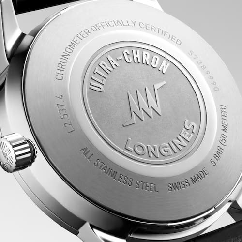 Мужские швейцарские механические часы Longines Heritage Ultra-Chron Classic 37 mm L2.537.4.72.2 – для ценителей высокоточных механизмов. Классический аксессуар с изящными стрелками дополнен ремешком из кожи аллигатора со стандартной застежкой. Изысканный корпус часов изготовлен из стали, диаметром 37 мм. Швейцарский автоматический калибр L836 отличается запасом хода на 52 часа. Сапфировое стеклоСапфировое стеклоПрочный и надёжный материал из кристалла сапфира синтетического происхождения, характеризующийся особой твёрдостью и устойчивостью к царапинам и повреждениям. имеет антибликовую обработкуАнтибликовое покрытиеСлой оксида металла в 0,13-0,3 микрон, благодаря которому стекло часов не бликует и не отражает свет. Антибликовое покрытие уменьшает отражение света в 10 раз, обеспечивая отличную читаемость показателей циферблата. и гарантирует четкость показаний. Стрелки с люминесцентным покрытиемЛюминесцентное покрытиеПозволяет считывать показания времени в темноте. Производители наносят на стрелки, часовые индексы, безель или поверхность циферблата светонакопительный состав, дающий холодное свечение. обеспечивают читаемость в темноте. Окошко даты в положении 3 часа. Класс водозащиты: 50 метров, позволит защитить корпус от случайных брызг или капель дождя. Longines Heritage – это не просто аксессуар, это символ статуса и безупречного вкуса, который будет радовать своего владельца долгие годы.