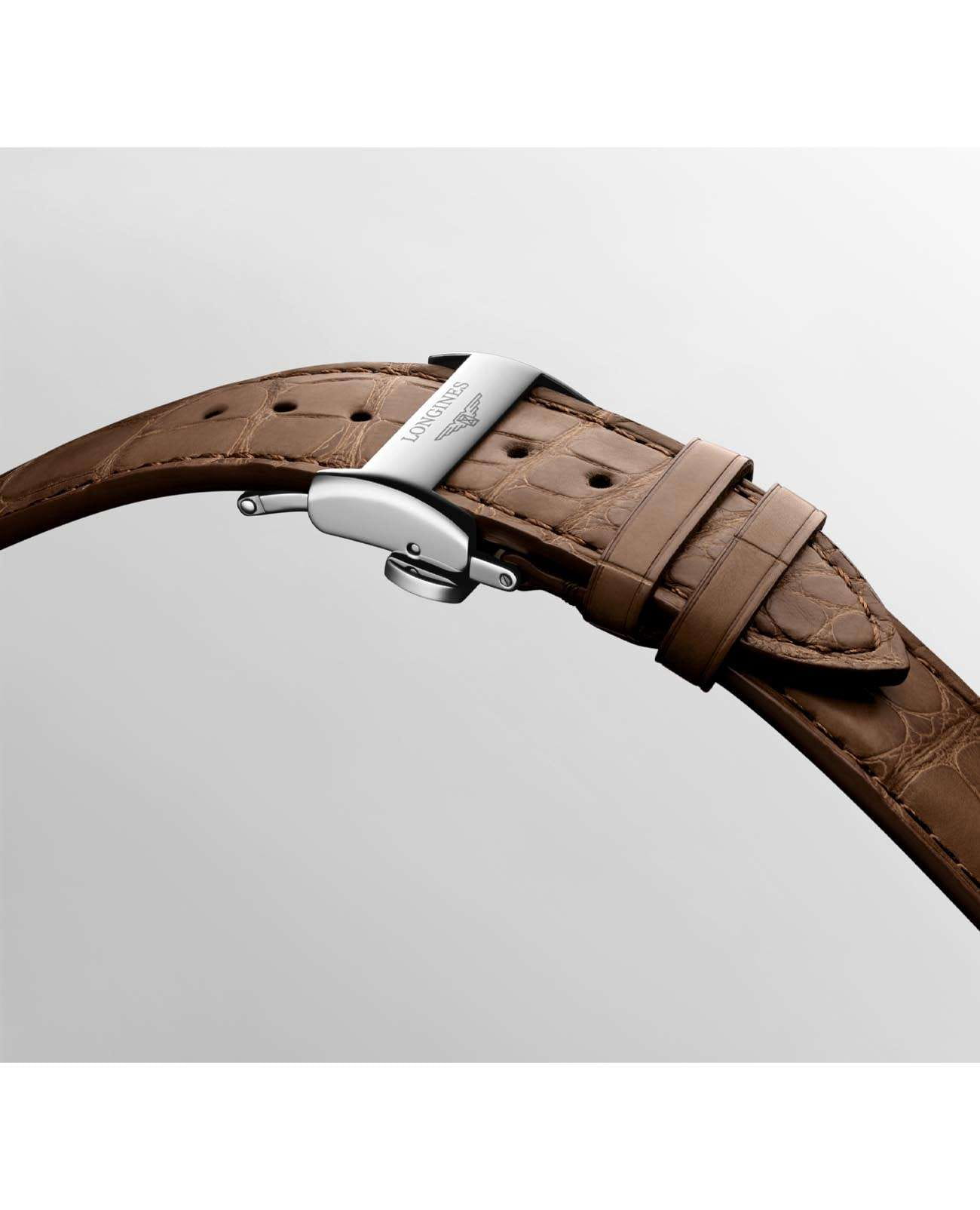 Мужские швейцарские механические часы с Longines Master Collection L2.893.4.59.2. Сапфировое стеклоСапфировое стеклоПрочный и надёжный материал из кристалла сапфира синтетического происхождения, характеризующийся особой твёрдостью и устойчивостью к царапинам и повреждениям. устойчивое к появлению царапин, обладающее высокой прозрачностью. Корпус часов изготовлен из нержавеющей стали. Автоматический механизм с частотой баланса 25 200 полуколебаний в час и запасом хода, которого хватает примерно на 72 часа работы. Окошко даты в положении 3 часа. Класс водозащиты: 30 метров, позволит защитить корпус от случайных брызг или капель дождя. Ремешок из кожи аллигатора на застёжке «бабочка» с кнопкамиЗастёжка "бабочка"Такой вид застёжки дополняется предохранителями, помогающими избежать случайного раскрытия браслета. Обладают изящным исполнением. .