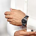 Римские цифры в сочетании с кожаным ремешком отражают элегантность. Внутри стального корпуса заключён швейцарский автоматический механизм L897, отличающийся 64-часовым запасом хода. Скелетонизированная задняя крышка с сапфировым стеклом позволяет отслеживать движение деталей и любоваться их отделкой. Годовой календарь включает указатели даты и дня недели.