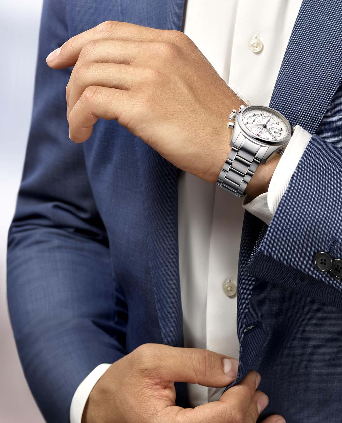 Мужинские швейцарские механические часы Longines Spirit L3.820.4.73.6 – это спортивный хронографХронографФункция позволяет измерять отрезки времени с особой точностью: часы, минуты, секунды. Верным признаком хронографа является наличие на циферблате 3 дополнительных окошек-счётчиков. с элегантным дизайном. Модель оснащена швейцарским автоматическим механизмом, который обеспечивает высокую точность и запас хода до 66 часов. Механизм сертифицирован COSCСертификат COSCОфициальный сертификат, подтверждающий то, что часы ходят с особо высокой точностью. Для получения документа часы подвергаются тестовым испытаниям, разработанным швейцарским институтом тестирования хронометров COSC. Допустимая норма для механических часов -4/+6 секунд в день, для кварцевых моделей +/- 0,07 секунд в день..