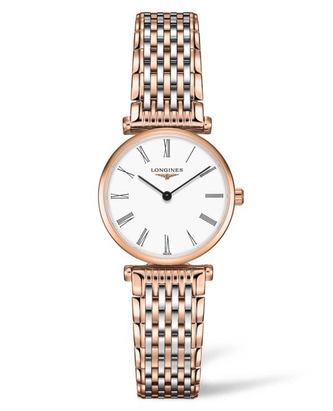 Женские швейцарские часы Longines La Grande Classique L4.209.1.91.7, кварцевый механизм с высокой точностью. Сапфировое стеклоСапфировое стеклоПрочный и надёжный материал из кристалла сапфира синтетического происхождения, характеризующийся особой твёрдостью и устойчивостью к царапинам и повреждениям. устойчивое к появлению царапин, обладающее высокой прозрачностью. Корпус часов изготовлен из стали с PVD-покрытиемPVDУльтратонкое покрытие наносится в технике вакуумного напыления, сочетает в себе нитрид титана особой прочности со слоем золота или оксида хрома. Несёт в себе декоративную или защитную функцию.. Циферблат украшают нарисованные римские цифры. Класс водозащиты: 30 метров, позволит защитить корпус от случайных брызг или капель дождя. Стальной браслет с частичным PVD-покрытиемPVDУльтратонкое покрытие наносится в технике вакуумного напыления, сочетает в себе нитрид титана особой прочности со слоем золота или оксида хрома. Несёт в себе декоративную или защитную функцию. на застёжке-бабочке с кнопкамиЗастёжка "бабочка"Такой вид застёжки дополняется предохранителями, помогающими избежать случайного раскрытия браслета. Обладают изящным исполнением. .