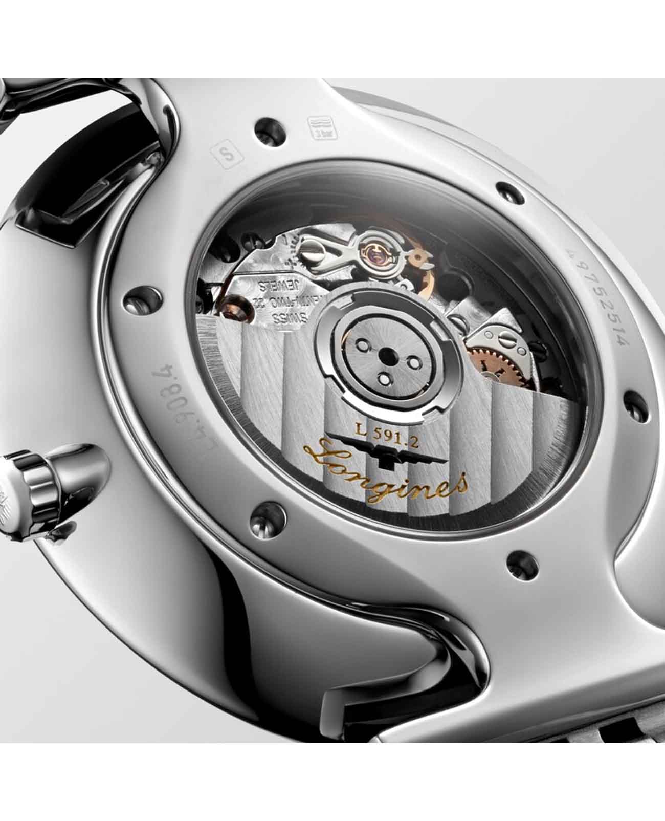 Швейцарский кварцевый калибр L591 гарантирует высокую точность хода, обеспечивая надежную работу часов на долгие годы. Сапфировое стеклоСапфировое стеклоПрочный и надёжный материал из кристалла сапфира синтетического происхождения, характеризующийся особой твёрдостью и устойчивостью к царапинам и повреждениям., устойчивое к царапинам, защищает механизм и циферблат, сохраняя их первозданный вид.
