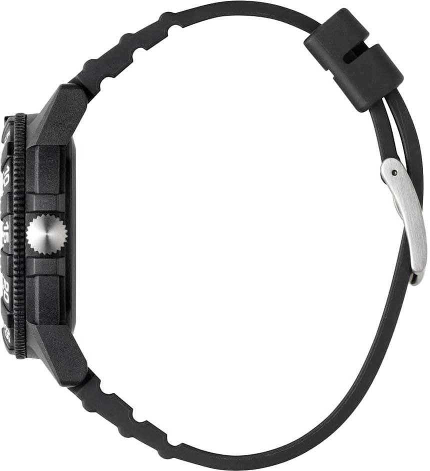 Часы Luminox XS.0324 — это надежный швейцарский аксессуар, сочетающий в себе легкость и функциональность. Благодаря корпусу из пластика, усиленного прессованным карбономКарбонОт «carbon», «carbone» - углерод, углепластик - полимерный композиционный материал из переплетённых под определенным углом между собой нитей углеродного волокна, применяется для изготовления лёгких, но прочных деталей. В часах часто используют для украшения циферблатов и ремешков. Так же карбон используется в изготовлении корпусов. Такие корпуса обладают антикоррозионным свойством, не поддаются электромагнитному излучению, обладают повышенной прочностью и противоударностью., они отличаются прочностью и малым весом. Черный циферблат оснащен уникальной подсветкой, которая позволяет узнать время даже в полной темноте. Технология LLTLLTLLT — это автономный механизм подсветки, основанный на использовании микроскопических газонаполненных элементов. Специальные герметичные капсулы из боросиликатного стекла, интегрированные в циферблат, генерируют свечение без необходимости подключения к внешним источникам энергии. Для их работы не требуется ни дополнительный свет, ни механическое воздействие (например, нажатие кнопки). Свечение возникает благодаря химическому процессу: реакция между тритием, заключенным в капсулах, и люминофорным покрытием создает стабильное автономное освещение. Технология обеспечивает энергетическую независимость и долговечность подсветки.-подсветки обеспечивает превосходную видимость ночью на протяжении 25 лет. Часы поддерживают как 12-часовой, так и 24-часовой формат времени, что делает их удобными для людей с разным режимом дня. БезельБезельВнешний ободок, закрепляющий стекло. В спортивных часах так называется поворотное кольцо с делениями на циферблате, выполняет роль таймера – замеряет отрезки времени на шкале. Неподвижный безель – элемент декора. Однонаправленно вращающийся безель на дайверских часах позволяет фиксировать моменты погружения и выныривания на поверхность., вращающийся в одном направлении, оснащен светящейся меткой на 12 часов, что добавляет удобства в использовании. Минеральное стеклоМинеральное стеклоМинеральное стекло представляет собой искусственно выращенный минерал кварца. Такое стекло отличается особой устойчивостью к повреждениям и царапинам. Уступает по некоторым качествам сапфировому стеклу. повышенной прочности защищает циферблат от повреждений, а водозащита класса 100WR позволяет не беспокоиться о воздействии влаги. Календарь с индикацией числа добавляет практичности. Заводная головка с защитой и двойной уплотнительной прокладкой гарантирует герметичность, а завинчивающаяся задняя крышка добавляет надежности конструкции. Полиуретановый черный ремешок с классической застежкой обеспечивает комфортное ношение и надежность фиксации на запястье. С размерами корпуса D 44мм, толщиной 12мм и весом всего 50г, эти часы представляют собой идеальное сочетание функциональности и стиля, удовлетворяющее требованиям самых взыскательных покупателей.