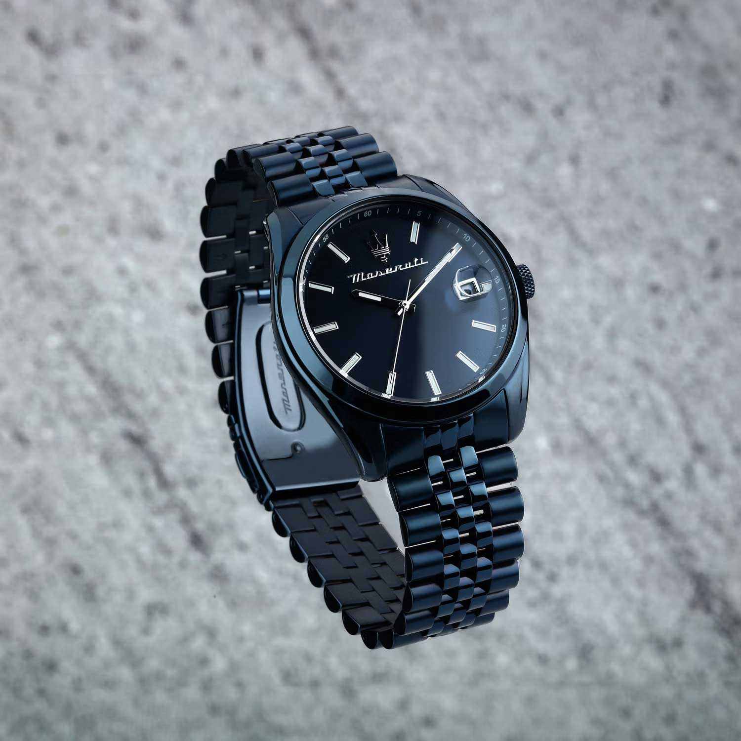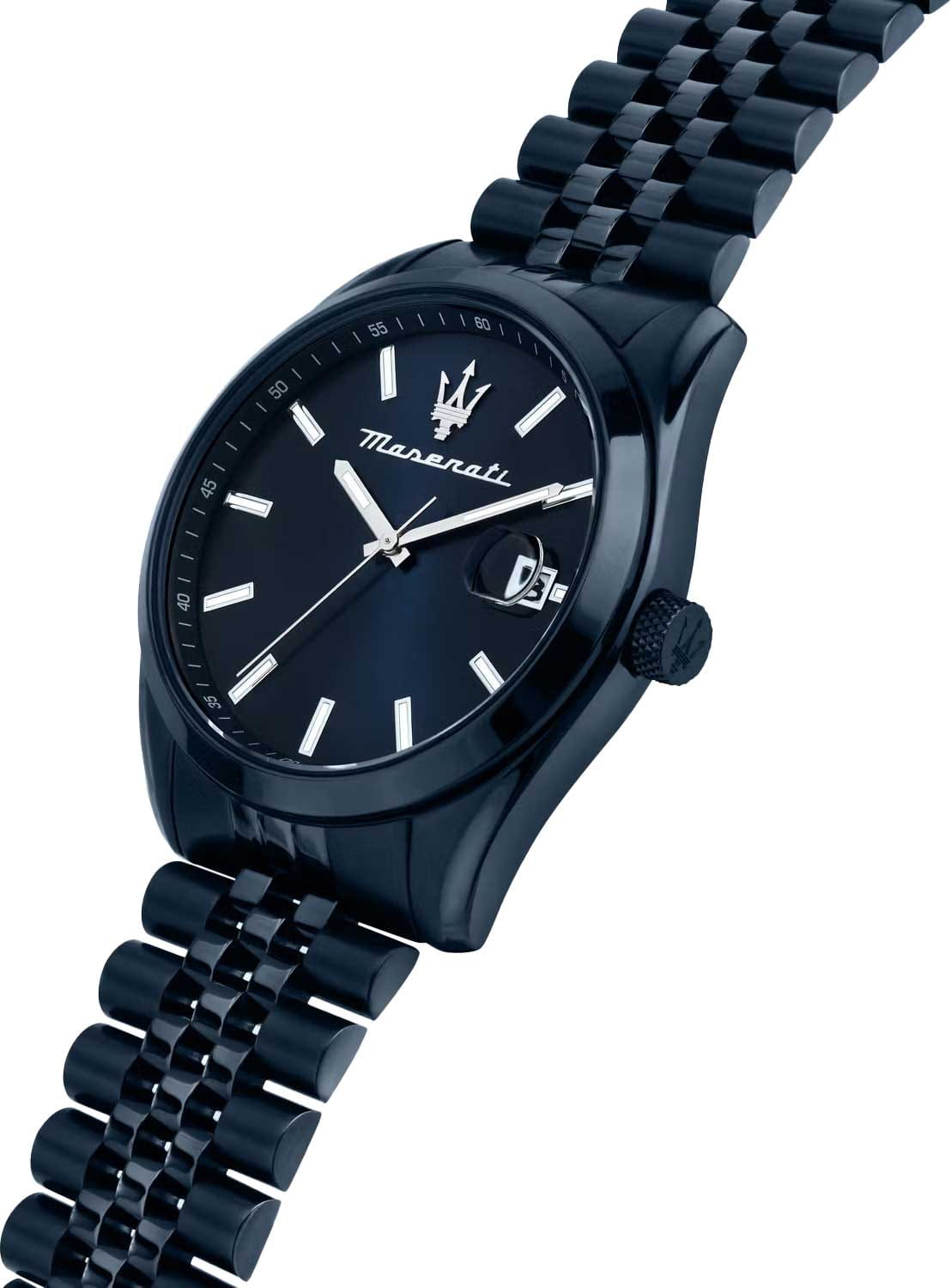 Мужские итальянские часы Maserati Attrazione R8853151016, кварцевый механизм с высокой точностью. Корпус часов изготовлен из стали с PVD-покрытиемPVDУльтратонкое покрытие наносится в технике вакуумного напыления, сочетает в себе нитрид титана особой прочности со слоем золота или оксида хрома. Несёт в себе декоративную или защитную функцию.. Стрелки с люминесцентным покрытиемЛюминесцентное покрытиеПозволяет считывать показания времени в темноте. Производители наносят на стрелки, часовые индексы, безель или поверхность циферблата светонакопительный состав, дающий холодное свечение.. Класс водозащиты: 50 метров, позволит защитить корпус от случайных брызг или капель дождя. Браслет с раскладной застёжкойРаскладная застёжкаТакой тип застёжки используется только на браслетах из металла. Она никогда не раскрывается полностью, происходит разделение на 2 и более частей. Раскладывающая застёжка снизит вероятность потери часов к минимуму. и с PVD-покрытиемPVDУльтратонкое покрытие наносится в технике вакуумного напыления, сочетает в себе нитрид титана особой прочности со слоем золота или оксида хрома. Несёт в себе декоративную или защитную функцию..
