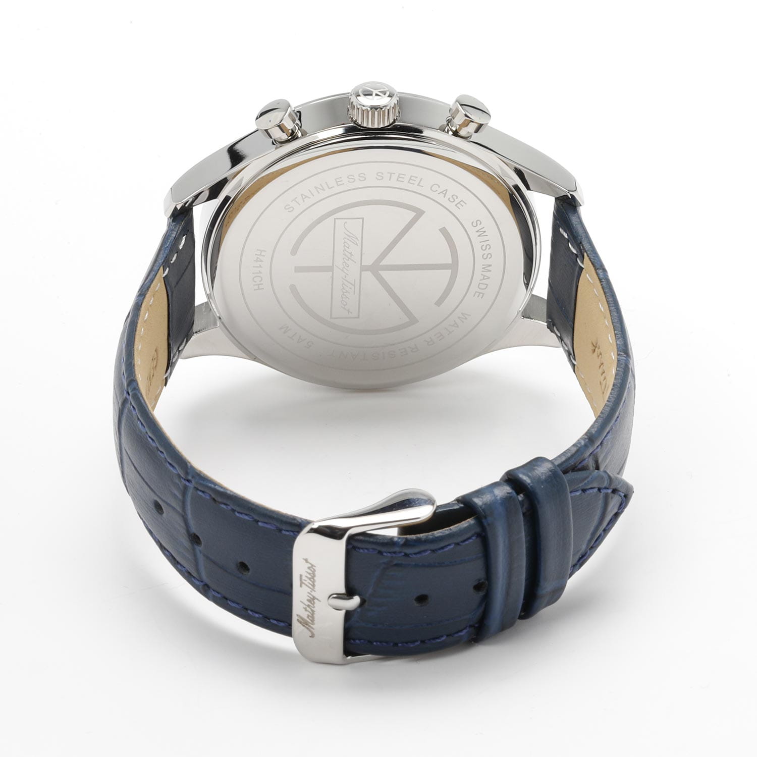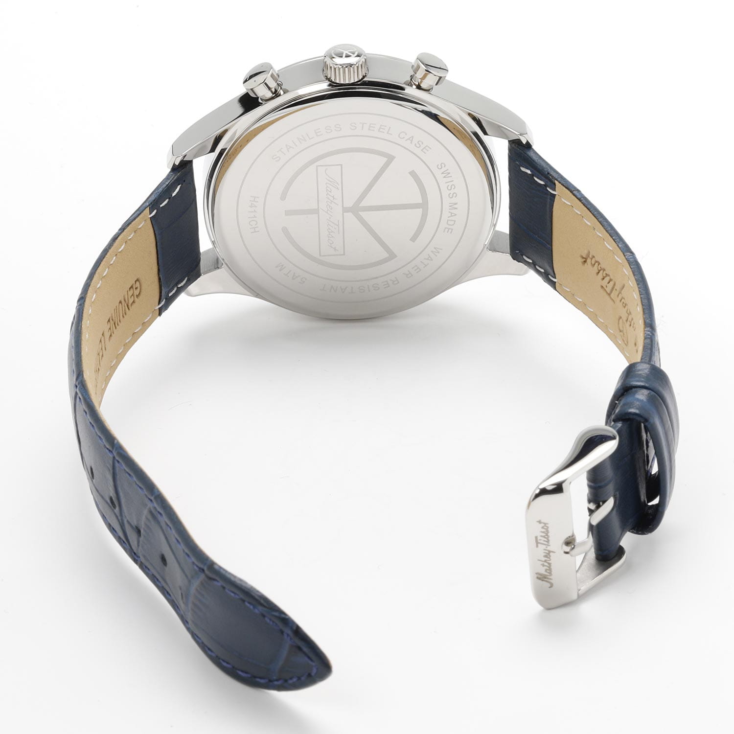 Мужские кварцевые часы-хронографХронографФункция позволяет измерять отрезки времени с особой точностью: часы, минуты, секунды. Верным признаком хронографа является наличие на циферблате 3 дополнительных окошек-счётчиков. Mathey-Tissot Urban H411CHALBU — это стильное сочетание элегантности и современного дизайна. Изящный корпус выполнен из нержавеющей стали, диаметром 42 мм, что придаст образу элегантности и надежности. Изысканный циферблат с метками в виде штрихов придает модели особый блеск. Циферблат защищен минеральным стекломМинеральное стеклоМинеральное стекло представляет собой искусственно выращенный минерал кварца. Такое стекло отличается особой устойчивостью к повреждениям и царапинам. Уступает по некоторым качествам сапфировому стеклу. с сапфировым покрытием, обеспечивает устойчивость к царапинам. Стрелки с люминесцентным покрытиемЛюминесцентное покрытиеПозволяет считывать показания времени в темноте. Производители наносят на стрелки, часовые индексы, безель или поверхность циферблата светонакопительный состав, дающий холодное свечение.. Окошко даты находится в положении 4 часа. Часы оснащены надежным кварцевым механизмом. Кожаный ремешок на стандартной застёжке гарантирует комфортное и безопасное ношение. Класс водозащиты: 50 метров позволит защитить корпус от случайных брызг или капель дождя. Mathey-Tissot  — отличный выбор для тех, кто ценит утонченность и качество.