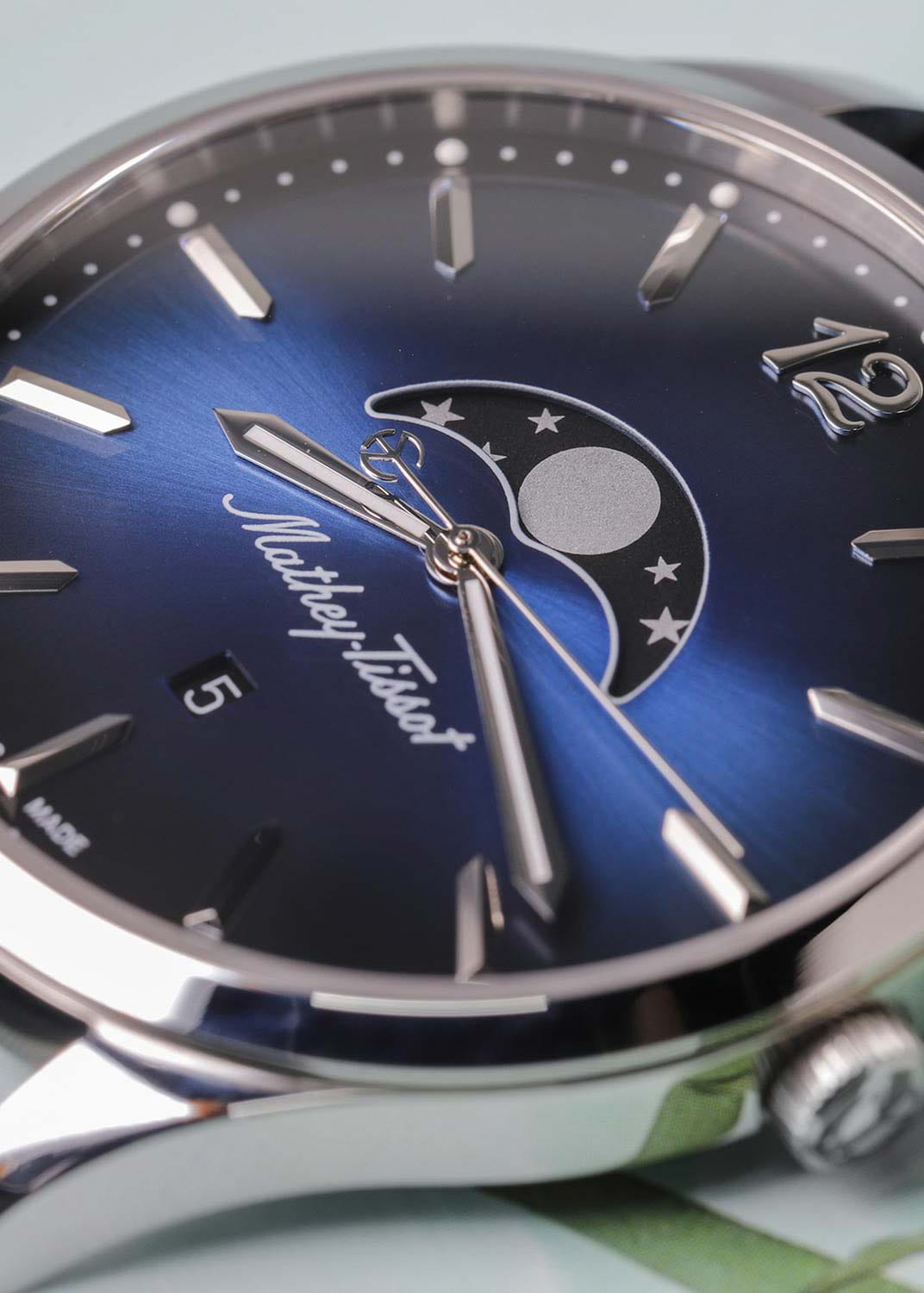 Мужские кварцевые часы Mathey-Tissot Urban H411LABU — это стильное сочетание элегантности и современного дизайна. Изящный корпус выполнен из нержавеющей стали, диаметром 42 мм, что придаст образу элегантности и надежности. Изысканный циферблат с метками в виде штрихов придает модели особый блеск. Циферблат защищен минеральным стекломМинеральное стеклоМинеральное стекло представляет собой искусственно выращенный минерал кварца. Такое стекло отличается особой устойчивостью к повреждениям и царапинам. Уступает по некоторым качествам сапфировому стеклу. с сапфировым покрытием, обеспечивает устойчивость к царапинам. Стрелки с люминесцентным покрытиемЛюминесцентное покрытиеПозволяет считывать показания времени в темноте. Производители наносят на стрелки, часовые индексы, безель или поверхность циферблата светонакопительный состав, дающий холодное свечение.. Окошко даты находится в положении 6 часов. Фазы Луны. Часы оснащены надежным кварцевым механизмом. Кожаный ремешок на стандартной застёжке гарантирует комфортное и безопасное ношение. Класс водозащиты: 50 метров позволит защитить корпус от случайных брызг или капель дождя. Mathey-Tissot — отличный выбор для тех, кто ценит утонченность и качество.