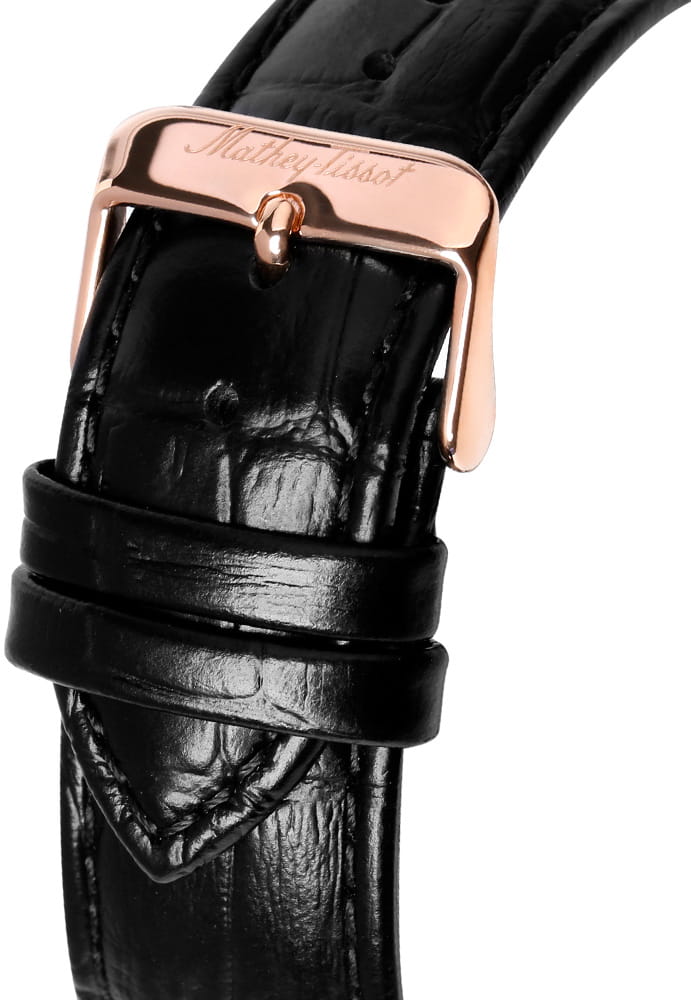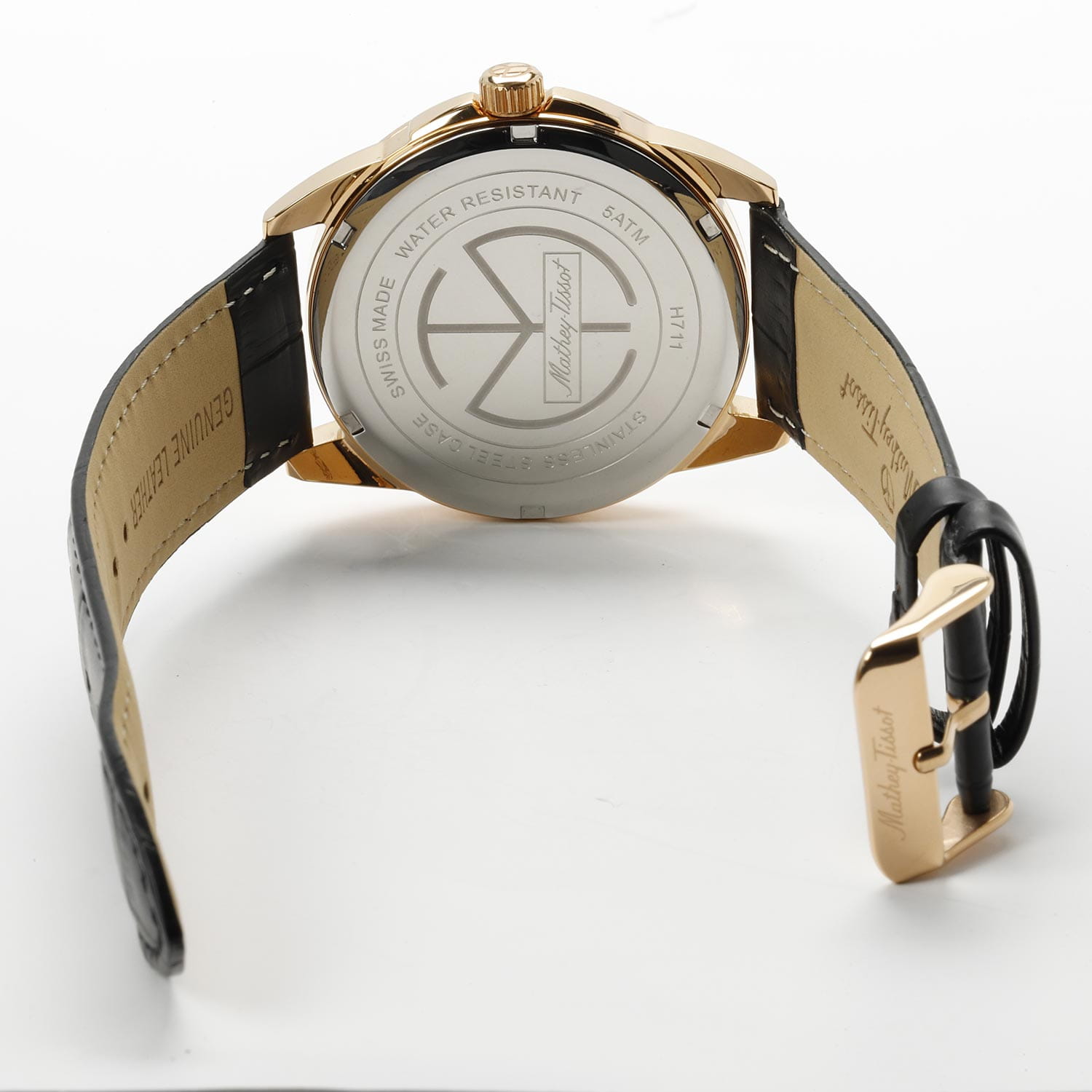 Мужские кварцевые часы Mathey-Tissot Mondo H711PS — это стильное сочетание элегантности и современного дизайна. Изящный корпус выполнен из нержавеющей стали с PVD-покрытиемPVDУльтратонкое покрытие наносится в технике вакуумного напыления, сочетает в себе нитрид титана особой прочности со слоем золота или оксида хрома. Несёт в себе декоративную или защитную функцию. цвета розового золота, диаметром 42 мм, что придаст образу элегантности и надежности. Изысканный циферблат с метками в виде штрихов придает модели особый блеск. Циферблат защищен минеральным стекломМинеральное стеклоМинеральное стекло представляет собой искусственно выращенный минерал кварца. Такое стекло отличается особой устойчивостью к повреждениям и царапинам. Уступает по некоторым качествам сапфировому стеклу., обеспечивает устойчивость к царапинам. Стрелки с люминесцентным покрытиемЛюминесцентное покрытиеПозволяет считывать показания времени в темноте. Производители наносят на стрелки, часовые индексы, безель или поверхность циферблата светонакопительный состав, дающий холодное свечение.. Окошко даты находится в положении 4 часа. Рифленая заводная головка. Часы оснащены надежным кварцевым механизмом. Кожаный ремешок на стандартной застёжке гарантирует комфортное и безопасное ношение. Класс водозащиты: 50 метров позволит защитить корпус от случайных брызг или капель дождя. Mathey-Tissot  — отличный выбор для тех, кто ценит утонченность и качество.