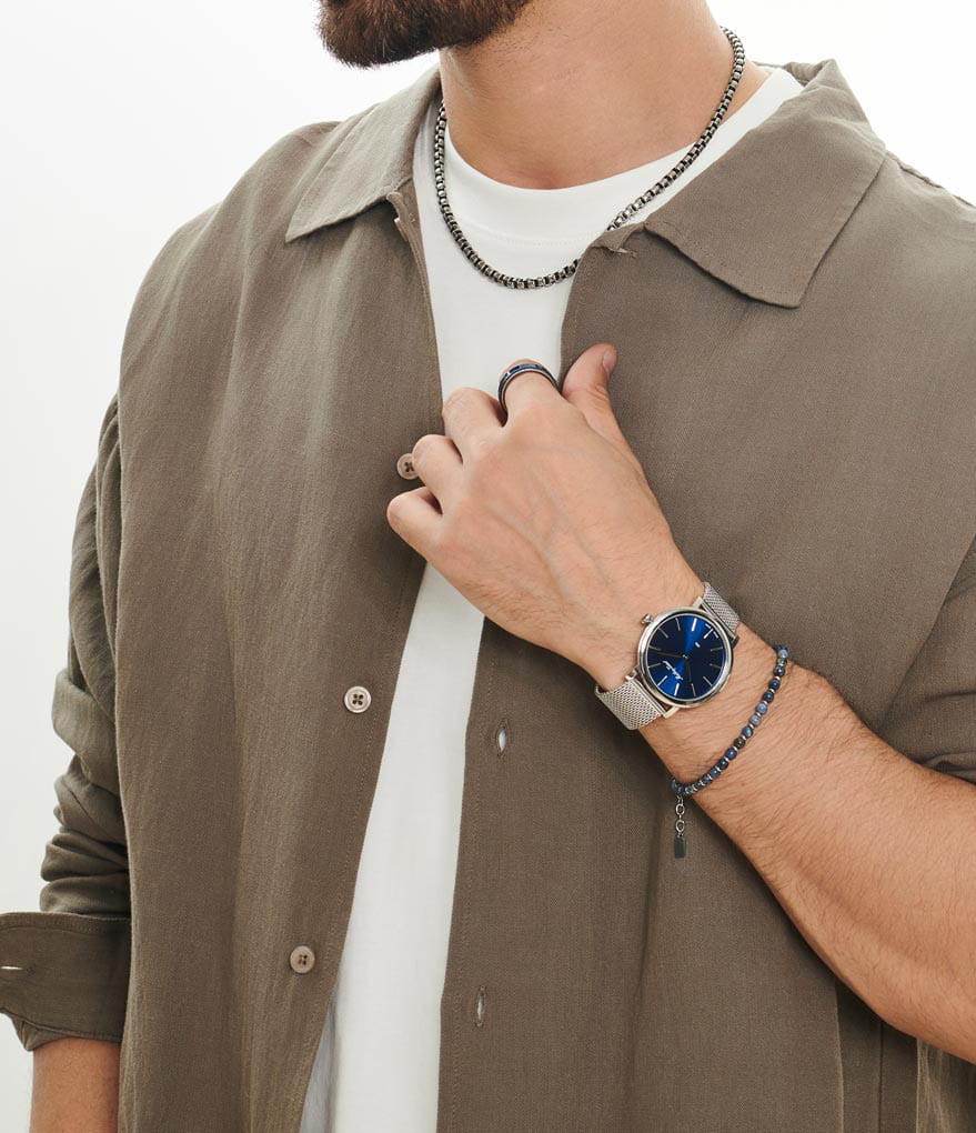 Мужские кварцевые часы Mathey-Tissot Monsoon H7916ABU — это стильное сочетание элегантности и современного дизайна. Изящный корпус выполнен из нержавеющей стали серебристого цвета, диаметром 40 мм, что придаст образу элегантности и надежности. Изысканный циферблат с метками в виде штрихов придает модели особый блеск. Циферблат выполнен по технологии Sunray (солнечные лучи) и защищен минеральным стекломМинеральное стеклоМинеральное стекло представляет собой искусственно выращенный минерал кварца. Такое стекло отличается особой устойчивостью к повреждениям и царапинам. Уступает по некоторым качествам сапфировому стеклу. с сапфировым покрытием, обеспечивает устойчивость к царапинам. Часы оснащены надежным кварцевым механизмом. Стальной браслет миланского плетения на раскладном замкеРаскладная застёжкаТакой тип застёжки используется только на браслетах из металла. Она никогда не раскрывается полностью, происходит разделение на 2 и более частей. Раскладывающая застёжка снизит вероятность потери часов к минимуму., гарантирует комфортное и безопасное ношение. Класс водозащиты: 50 метров позволит защитить корпус от случайных брызг или капель дождя. Mathey-Tissot  — отличный выбор для тех, кто ценит утонченность и качество.