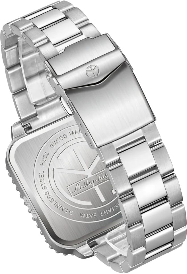 Мужские кварцевые часы Mathey-Tissot Mathy H902QABU — это стильное сочетание элегантности и современного дизайна. Изящный корпус выполнен из нержавеющей стали, диаметром 42 мм, что придаст образу элегантности и надежности. Изысканный циферблат с метками в виде точек придает модели особый блеск. Циферблат защищен сапфировым стекломСапфировое стеклоПрочный и надёжный материал из кристалла сапфира синтетического происхождения, характеризующийся особой твёрдостью и устойчивостью к царапинам и повреждениям., обеспечивает устойчивость к царапинам. Стрелки и метки с люминесцентным покрытиемЛюминесцентное покрытиеПозволяет считывать показания времени в темноте. Производители наносят на стрелки, часовые индексы, безель или поверхность циферблата светонакопительный состав, дающий холодное свечение. SuperLumiNova, которое светится в темноте после непродолжительной зарядки на свету. БезельБезельВнешний ободок, закрепляющий стекло. В спортивных часах так называется поворотное кольцо с делениями на циферблате, выполняет роль таймера – замеряет отрезки времени на шкале. Неподвижный безель – элемент декора. Однонаправленно вращающийся безель на дайверских часах позволяет фиксировать моменты погружения и выныривания на поверхность. с PVD-покрытиемPVDУльтратонкое покрытие наносится в технике вакуумного напыления, сочетает в себе нитрид титана особой прочности со слоем золота или оксида хрома. Несёт в себе декоративную или защитную функцию. синего цвета. Окошко даты находится в положении 3 часа. Стальной браслет на раскладной застёжке с фиксаторомРаскладная застёжкаТакой тип застёжки используется только на браслетах из металла. Она никогда не раскрывается полностью, происходит разделение на 2 и более частей. Раскладывающая застёжка снизит вероятность потери часов к минимуму., гарантирует комфортное и безопасное ношение. Рифленая заводная головка. Класс водозащиты: 50 метров позволит защитить корпус от случайных брызг или капель дождя. Mathey-Tissot — отличный выбор для тех, кто ценит утонченность и качество.