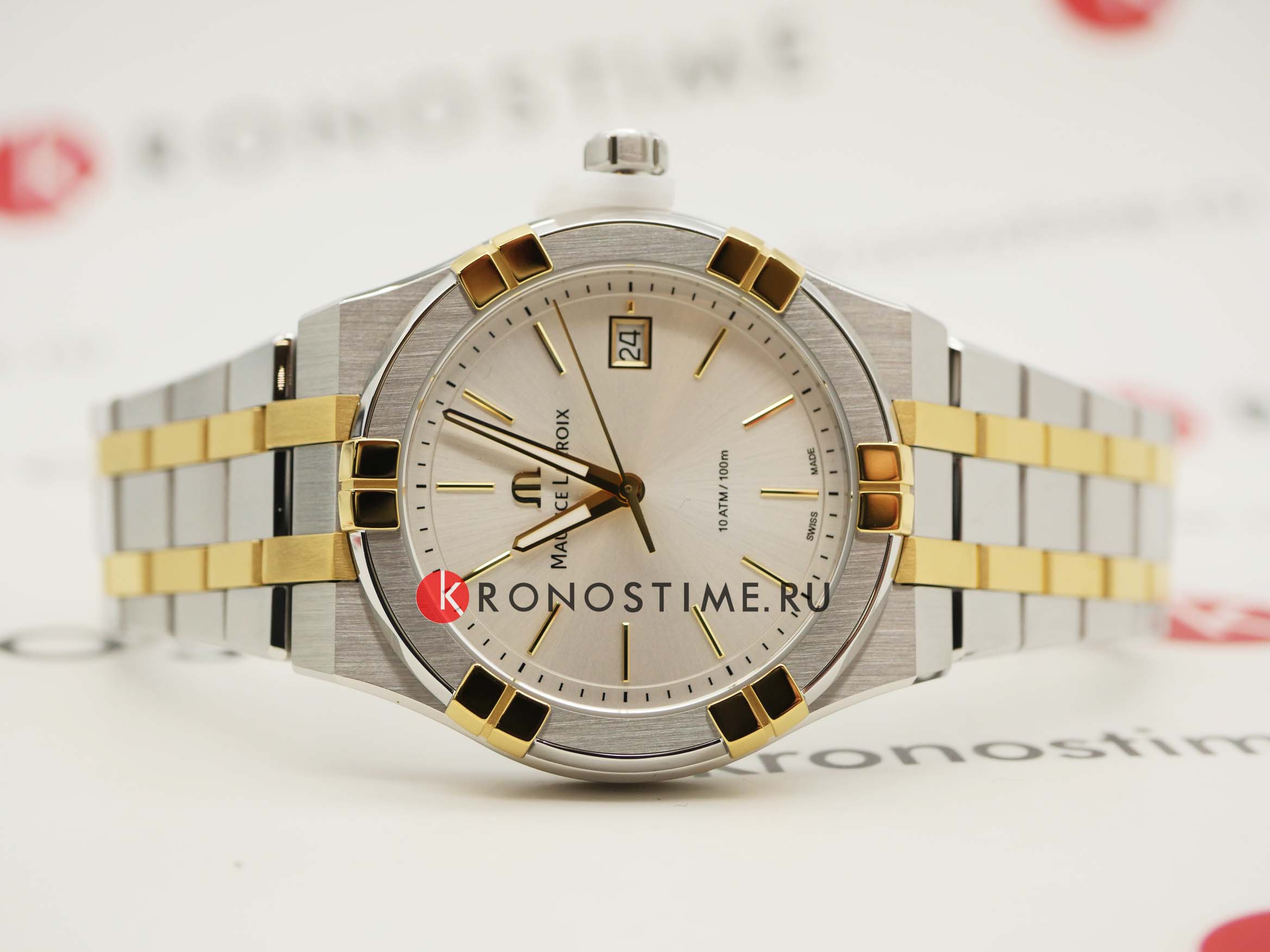 Мужские швейцарские кварцевые часы Maurice Lacroix Aikon Quartz AI1108-PVY13-130-1, кварцевый механизм с высокой точностью. Сапфировое стеклоСапфировое стеклоПрочный и надёжный материал из кристалла сапфира синтетического происхождения, характеризующийся особой твёрдостью и устойчивостью к царапинам и повреждениям. устойчивое к появлению царапин, обладающее высокой прозрачностью. Класс водозащиты: 100 метров, позволит плавать, нырять и заниматься другими водными видами спорта. Корпус и браслет часов изготовлены из нержавеющей стали с частичным PVDPVDУльтратонкое покрытие наносится в технике вакуумного напыления, сочетает в себе нитрид титана особой прочности со слоем золота или оксида хрома. Несёт в себе декоративную или защитную функцию. покрытием. Окошко даты в положении 3 часов. Стрелки с люминесцентным покрытиемЛюминесцентное покрытиеПозволяет считывать показания времени в темноте. Производители наносят на стрелки, часовые индексы, безель или поверхность циферблата светонакопительный состав, дающий холодное свечение.. Браслет на застёжке «бабочка» с кнопкамиЗастёжка "бабочка"Такой вид застёжки дополняется предохранителями, помогающими избежать случайного раскрытия браслета. Обладают изящным исполнением. .