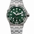 Механический механизм (автоматический калибр) с высокой точностью. Сапфировое стеклоСапфировое стеклоПрочный и надёжный материал из кристалла сапфира синтетического происхождения, характеризующийся особой твёрдостью и устойчивостью к царапинам и повреждениям. устойчивое к появлению царапин, обладающее высокой прозрачностью. Стрелки с люминесцентным покрытиемЛюминесцентное покрытиеПозволяет считывать показания времени в темноте. Производители наносят на стрелки, часовые индексы, безель или поверхность циферблата светонакопительный состав, дающий холодное свечение.. Поворотный безельБезельВнешний ободок, закрепляющий стекло. В спортивных часах так называется поворотное кольцо с делениями на циферблате, выполняет роль таймера – замеряет отрезки времени на шкале. Неподвижный безель – элемент декора. Однонаправленно вращающийся безель на дайверских часах позволяет фиксировать моменты погружения и выныривания на поверхность.. Класс водозащиты: 300 метров, позволит плавать, нырять и заниматься другими водными видами спорта. Корпус часов изготовлен из нержавеющей стали. Браслет с застёжкой «бабочка» с кнопкамиЗастёжка "бабочка"Такой вид застёжки дополняется предохранителями, помогающими избежать случайного раскрытия браслета. Обладают изящным исполнением. .