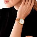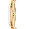 Женские американские часы с минеральным стекломМинеральное стеклоМинеральное стекло представляет собой искусственно выращенный минерал кварца. Такое стекло отличается особой устойчивостью к повреждениям и царапинам. Уступает по некоторым качествам сапфировому стеклу. Michael Kors Runway MK7465, кварцевый механизм с высокой точностью. Корпус часов изготовлен из нержавеющей стали с PVD-покрытиемPVDУльтратонкое покрытие наносится в технике вакуумного напыления, сочетает в себе нитрид титана особой прочности со слоем золота или оксида хрома. Несёт в себе декоративную или защитную функцию.. Класс водозащиты: 50 метров, позволит защитить корпус от случайных брызг или капель дождя. Стальной браслет из стали с PVD-покрытиемPVDУльтратонкое покрытие наносится в технике вакуумного напыления, сочетает в себе нитрид титана особой прочности со слоем золота или оксида хрома. Несёт в себе декоративную или защитную функцию. на раскладной застёжкеРаскладная застёжкаТакой тип застёжки используется только на браслетах из металла. Она никогда не раскрывается полностью, происходит разделение на 2 и более частей. Раскладывающая застёжка снизит вероятность потери часов к минимуму.. Кожаный ремешок на стандартной застежке.