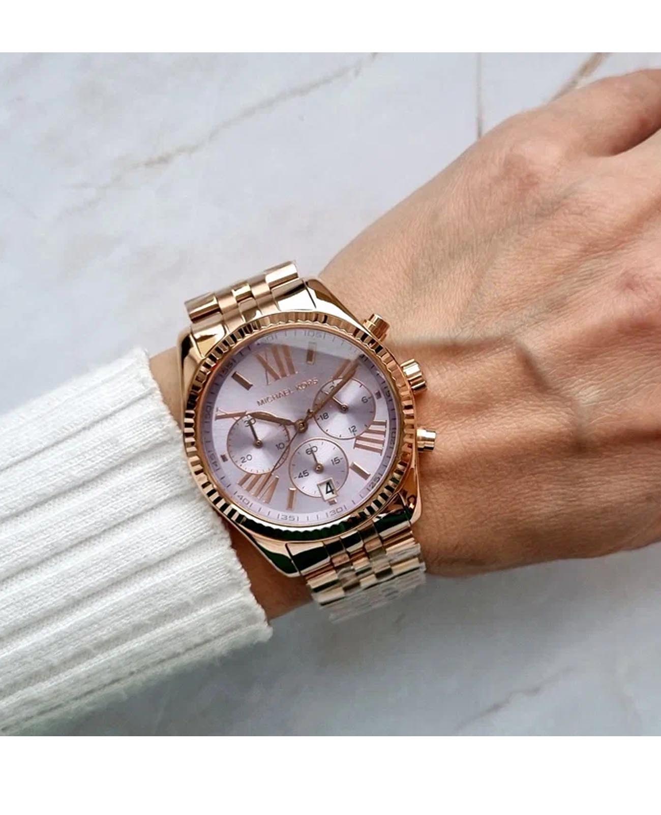 Женские американские часы-хронографХронографФункция позволяет измерять отрезки времени с особой точностью: часы, минуты, секунды. Верным признаком хронографа является наличие на циферблате 3 дополнительных окошек-счётчиков. с секундомеромСекундомерСекундоме́р — прибор, способный измерять интервалы времени с точностью до долей секунды. и с минеральным стекломМинеральное стеклоМинеральное стекло представляет собой искусственно выращенный минерал кварца. Такое стекло отличается особой устойчивостью к повреждениям и царапинам. Уступает по некоторым качествам сапфировому стеклу. Michael Kors Lexington MK6207, кварцевый механизм с высокой точностью. Корпус часов изготовлен из нержавеющей стали с PVD-покрытиемPVDУльтратонкое покрытие наносится в технике вакуумного напыления, сочетает в себе нитрид титана особой прочности со слоем золота или оксида хрома. Несёт в себе декоративную или защитную функцию.. Три дополнительных индикатора на циферблате. 12-ти и 24-х часовой формат. Окошко даты находится в положении 6 часов. Класс водозащиты: 100 метров, позволит плавать, нырять и заниматься другими водными видами спорта. Стальной браслет из нержавеющей стали с PVD-покрытиемPVDУльтратонкое покрытие наносится в технике вакуумного напыления, сочетает в себе нитрид титана особой прочности со слоем золота или оксида хрома. Несёт в себе декоративную или защитную функцию. на раскладной застёжкеРаскладная застёжкаТакой тип застёжки используется только на браслетах из металла. Она никогда не раскрывается полностью, происходит разделение на 2 и более частей. Раскладывающая застёжка снизит вероятность потери часов к минимуму..