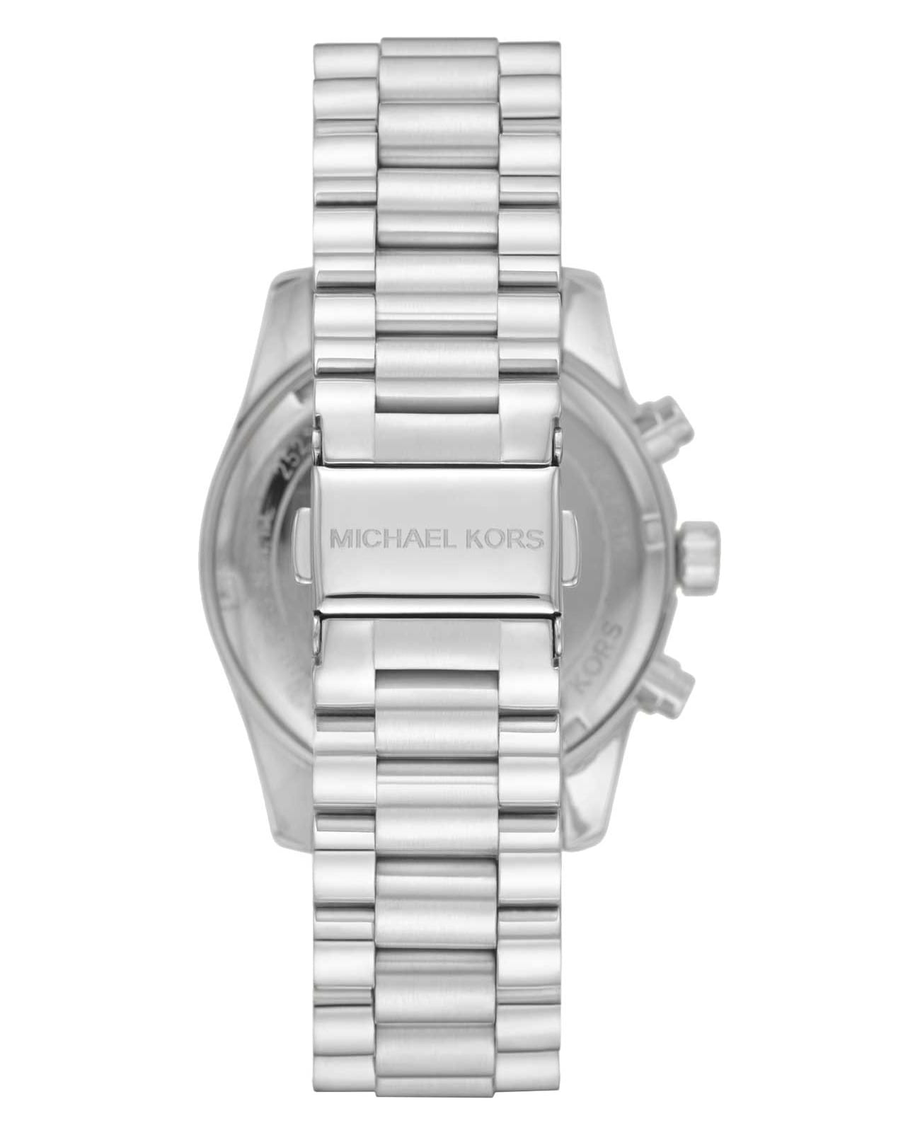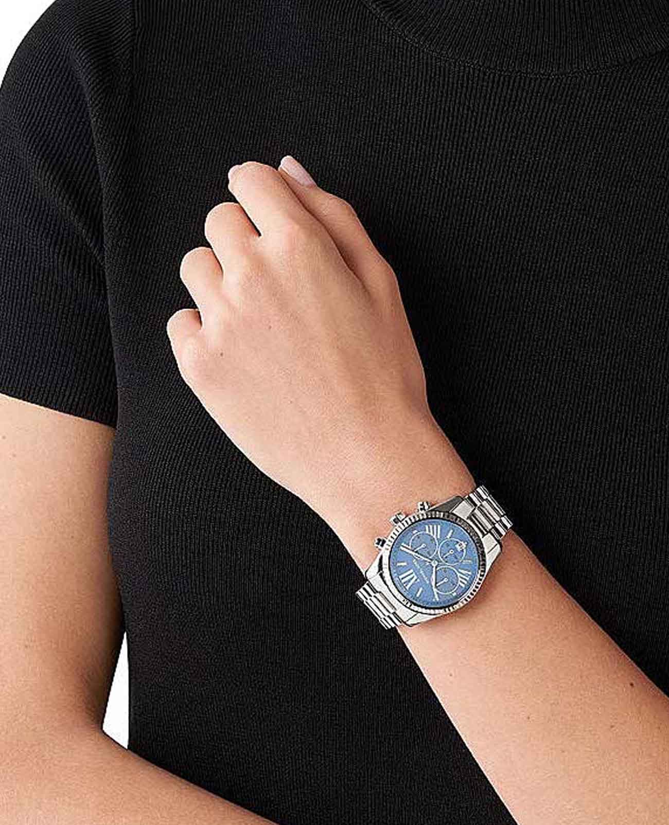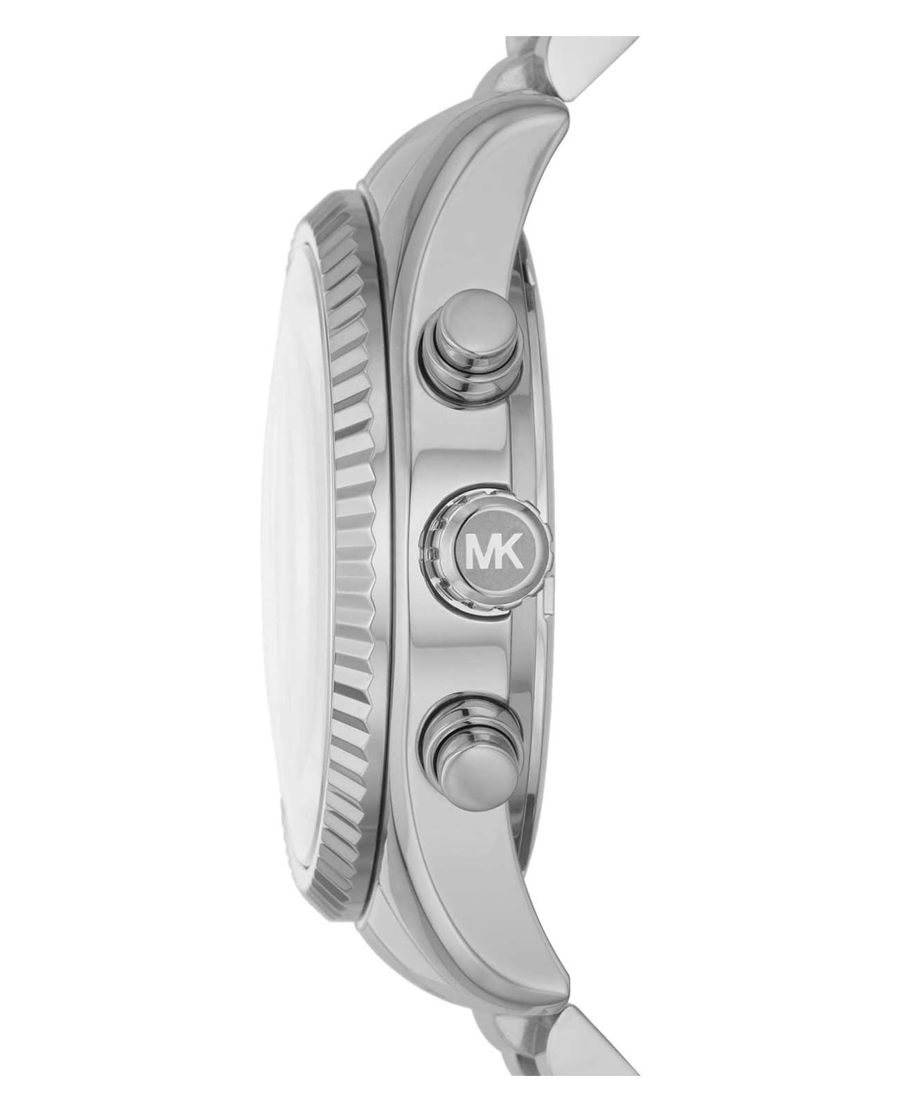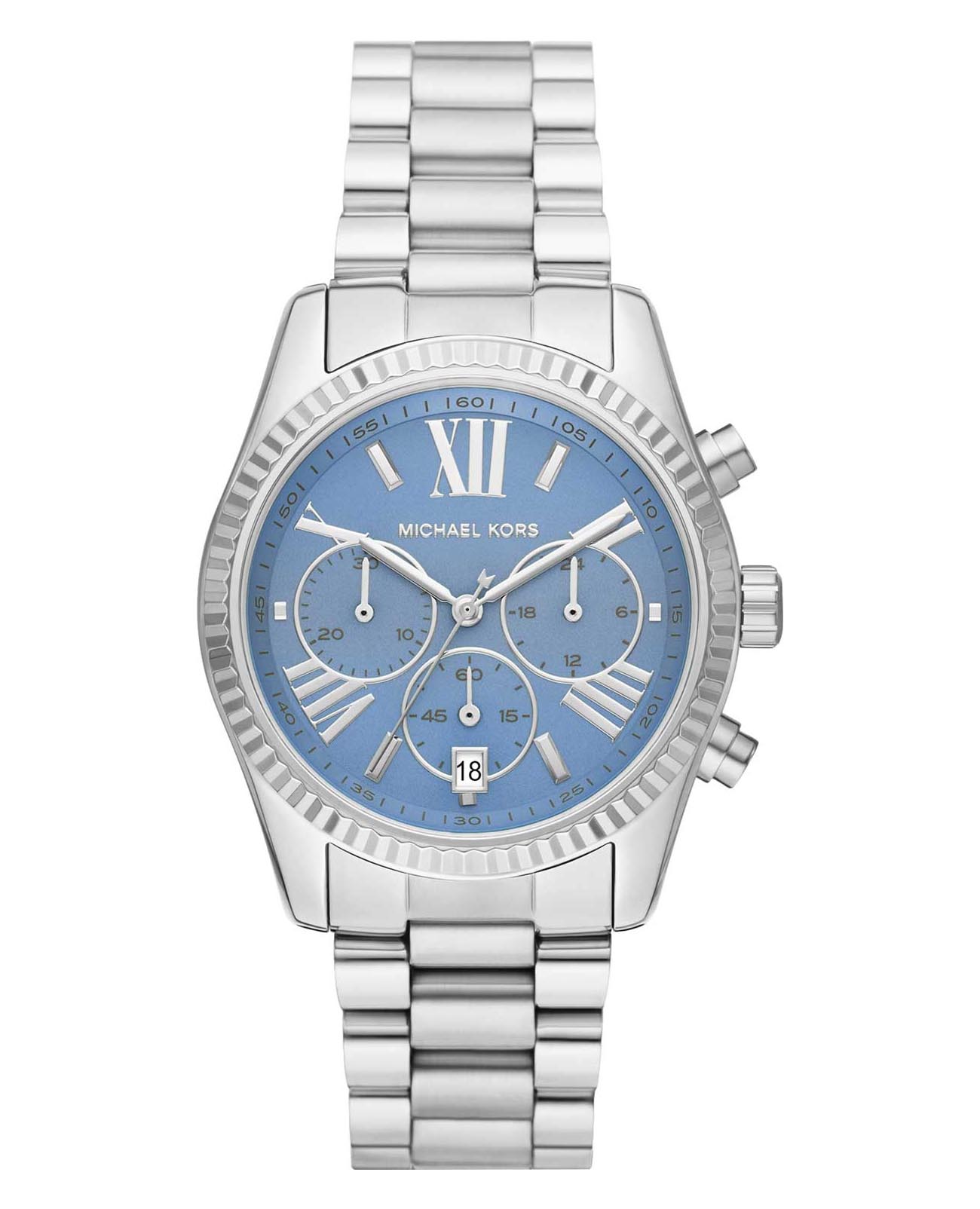 Женские американские часы-хронографХронографФункция позволяет измерять отрезки времени с особой точностью: часы, минуты, секунды. Верным признаком хронографа является наличие на циферблате 3 дополнительных окошек-счётчиков. с секундомеромСекундомерСекундоме́р — прибор, способный измерять интервалы времени с точностью до долей секунды. и с минеральным стекломМинеральное стеклоМинеральное стекло представляет собой искусственно выращенный минерал кварца. Такое стекло отличается особой устойчивостью к повреждениям и царапинам. Уступает по некоторым качествам сапфировому стеклу. Michael Kors Lexington MK7215, кварцевый механизм с высокой точностью. Корпус часов изготовлен из нержавеющей стали. Три дополнительных индикатора на циферблате. 12-ти и 24-х часовой формат. Окошко даты находится в положении 6 часов. Класс водозащиты: 100 метров, позволит плавать, нырять и заниматься другими водными видами спорта. Стальной браслет из нержавеющей стали на раскладной застёжкеРаскладная застёжкаТакой тип застёжки используется только на браслетах из металла. Она никогда не раскрывается полностью, происходит разделение на 2 и более частей. Раскладывающая застёжка снизит вероятность потери часов к минимуму..