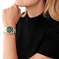 Женские американские часы-хронографХронографФункция позволяет измерять отрезки времени с особой точностью: часы, минуты, секунды. Верным признаком хронографа является наличие на циферблате 3 дополнительных окошек-счётчиков. с секундомеромСекундомерСекундоме́р — прибор, способный измерять интервалы времени с точностью до долей секунды. и с минеральным стекломМинеральное стеклоМинеральное стекло представляет собой искусственно выращенный минерал кварца. Такое стекло отличается особой устойчивостью к повреждениям и царапинам. Уступает по некоторым качествам сапфировому стеклу. Michael Kors Lexington MK7303, кварцевый механизм с высокой точностью. Корпус часов изготовлен из нержавеющей стали. БезельБезельВнешний ободок, закрепляющий стекло. В спортивных часах так называется поворотное кольцо с делениями на циферблате, выполняет роль таймера – замеряет отрезки времени на шкале. Неподвижный безель – элемент декора. Однонаправленно вращающийся безель на дайверских часах позволяет фиксировать моменты погружения и выныривания на поверхность. с PVD-покрытиемPVDУльтратонкое покрытие наносится в технике вакуумного напыления, сочетает в себе нитрид титана особой прочности со слоем золота или оксида хрома. Несёт в себе декоративную или защитную функцию. украшен кристаллами. Три дополнительных индикатора. Метки в виде штрихов и римских цифр. Окошко даты находится в положении 6 часов. Класс водозащиты: 100 метров, позволит плавать, нырять и заниматься другими водными видами спорта. Стальной браслет с частичным PVD-покрытиемPVDУльтратонкое покрытие наносится в технике вакуумного напыления, сочетает в себе нитрид титана особой прочности со слоем золота или оксида хрома. Несёт в себе декоративную или защитную функцию. на раскладной застёжкеРаскладная застёжкаТакой тип застёжки используется только на браслетах из металла. Она никогда не раскрывается полностью, происходит разделение на 2 и более частей. Раскладывающая застёжка снизит вероятность потери часов к минимуму..