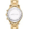Женские американские часы-хронографХронографФункция позволяет измерять отрезки времени с особой точностью: часы, минуты, секунды. Верным признаком хронографа является наличие на циферблате 3 дополнительных окошек-счётчиков. с секундомеромСекундомерСекундоме́р — прибор, способный измерять интервалы времени с точностью до долей секунды. и с минеральным стекломМинеральное стеклоМинеральное стекло представляет собой искусственно выращенный минерал кварца. Такое стекло отличается особой устойчивостью к повреждениям и царапинам. Уступает по некоторым качествам сапфировому стеклу. Michael Kors Runway MK7326, кварцевый механизм с высокой точностью. Корпус часов изготовлен из нержавеющей стали с PVD-покрытиемPVDУльтратонкое покрытие наносится в технике вакуумного напыления, сочетает в себе нитрид титана особой прочности со слоем золота или оксида хрома. Несёт в себе декоративную или защитную функцию.. Три дополнительных индикатора на циферблате. Метки в виде штрихов и цифр. Стрелки и метки с люминесцентным покрытиемЛюминесцентное покрытиеПозволяет считывать показания времени в темноте. Производители наносят на стрелки, часовые индексы, безель или поверхность циферблата светонакопительный состав, дающий холодное свечение.. Окошко даты находится между 4 и 5 часами. Класс водозащиты: 50 метров, позволит защитить корпус от случайных брызг или капель дождя. Стальной браслет с PVD-покрытиемPVDУльтратонкое покрытие наносится в технике вакуумного напыления, сочетает в себе нитрид титана особой прочности со слоем золота или оксида хрома. Несёт в себе декоративную или защитную функцию. на раскладной застёжкеРаскладная застёжкаТакой тип застёжки используется только на браслетах из металла. Она никогда не раскрывается полностью, происходит разделение на 2 и более частей. Раскладывающая застёжка снизит вероятность потери часов к минимуму..
