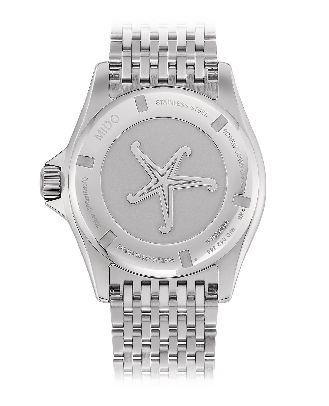Модель оснащена автоматическим механизмом MIDO Caliber 80, обеспечивающим запас хода до 80 часов. Функционал включает индикацию часов, минут, секунд, даты и дня недели.