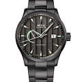 Браслет из нержавеющей стали с антрацитовым PVD-покрытиемPVDУльтратонкое покрытие наносится в технике вакуумного напыления, сочетает в себе нитрид титана особой прочности со слоем золота или оксида хрома. Несёт в себе декоративную или защитную функцию. и раскладывающейся застёжкойРаскладная застёжкаТакой тип застёжки используется только на браслетах из металла. Она никогда не раскрывается полностью, происходит разделение на 2 и более частей. Раскладывающая застёжка снизит вероятность потери часов к минимуму. обеспечивает комфортное ношение.