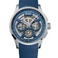 Швейцарские мужские наручные часы Mido Multifort Skeleton Chronograph M038.662.17.040.00, механический механизм с высокой точностью. Циферблат c сапфировым стекломСапфировое стеклоПрочный и надёжный материал из кристалла сапфира синтетического происхождения, характеризующийся особой твёрдостью и устойчивостью к царапинам и повреждениям., устойчивым к появлению царапин и обладающее высокой прозрачностью. Класс водозащиты: 100 метров, позволит плавать, нырять и заниматься другими водными видами спорта. Часы оснащены люминесцентным покрытиемЛюминесцентное покрытиеПозволяет считывать показания времени в темноте. Производители наносят на стрелки, часовые индексы, безель или поверхность циферблата светонакопительный состав, дающий холодное свечение., обеспечивающим отличную видимость даже при слабом освещении. Корпус часов изготовлен из стали. Часы с балансом из Nivachron™Nivachron™Специально разработанный инновационный сплав Nivachron™ повышает устойчивость часов к воздействию магнитных полей., обеспечивающим высокую устойчивость к магнитным полям и ударам. Часы с функциями хронографаХронографФункция позволяет измерять отрезки времени с особой точностью: часы, минуты, секунды. Верным признаком хронографа является наличие на циферблате 3 дополнительных окошек-счётчиков. и тахиметраТахиметрРазмеченная шкала, располагается на ободке или безеле часов. Тахиметр позволяет рассчитать скорость на определённом участке пути, расстояние измеряется в километрах или милях.. Каучуковый ремешок синего цвета со стандартной застежкой обеспечивает комфортное ношение.