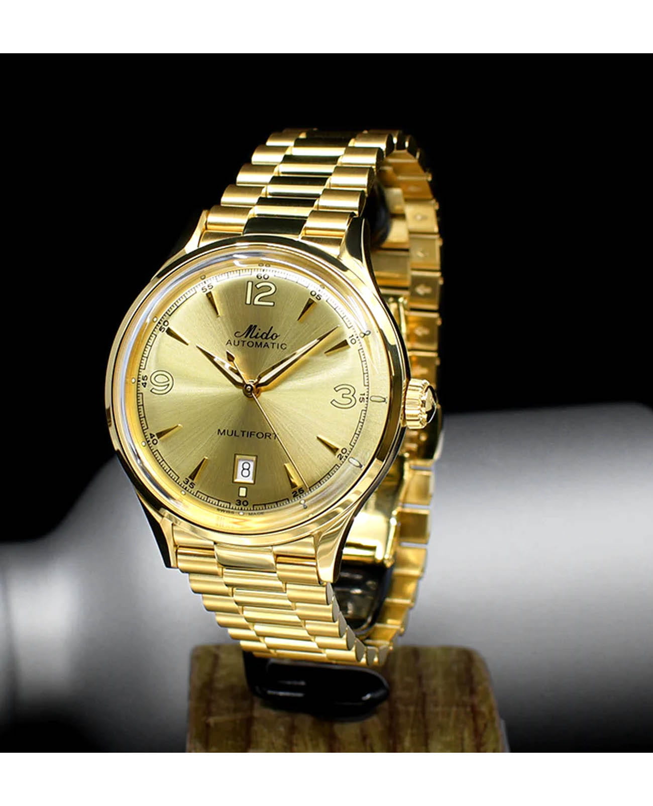 Мужские механические швейцарские часы Mido Multifort Powerwind M040.407.33.027.00, механический механизм (автоматический калибр) с высокой точностью. Сапфировое стеклоСапфировое стеклоПрочный и надёжный материал из кристалла сапфира синтетического происхождения, характеризующийся особой твёрдостью и устойчивостью к царапинам и повреждениям. устойчивое к появлению царапин, обладающее высокой прозрачностью. Благодаря своему ретро-дизайну и исключительной надежности Multifort Powerwind отдает дань уважения опыту Mido. В 1954 году был впервые выпущен механизм “Powerwind”, положивший начало революционной модели, которая носит его название. На тот момент этот автоматический механизм был самым точным и надежным в Midos, что представляет собой большую эволюцию. Руководствуясь теми же амбициями, компания Mido продолжает оснащать швейцарские часы Multifort Powerwind высокими технологиями, которые позволяют, как и в прошлом, обеспечивать непревзойденную надежность и точность хронометража. Корпус часов изготовлен из нержавеющей стали c PVDPVDУльтратонкое покрытие наносится в технике вакуумного напыления, сочетает в себе нитрид титана особой прочности со слоем золота или оксида хрома. Несёт в себе декоративную или защитную функцию. покрытием. Стрелки с люминесцентным покрытиемЛюминесцентное покрытиеПозволяет считывать показания времени в темноте. Производители наносят на стрелки, часовые индексы, безель или поверхность циферблата светонакопительный состав, дающий холодное свечение.. Класс водозащиты: 50 метров, позволит защитить корпус от случайных брызг или капель дождя. Стальной браслет c PVDPVDУльтратонкое покрытие наносится в технике вакуумного напыления, сочетает в себе нитрид титана особой прочности со слоем золота или оксида хрома. Несёт в себе декоративную или защитную функцию. покрытием на раскладной застёжкеРаскладная застёжкаТакой тип застёжки используется только на браслетах из металла. Она никогда не раскрывается полностью, происходит разделение на 2 и более частей. Раскладывающая застёжка снизит вероятность потери часов к минимуму..