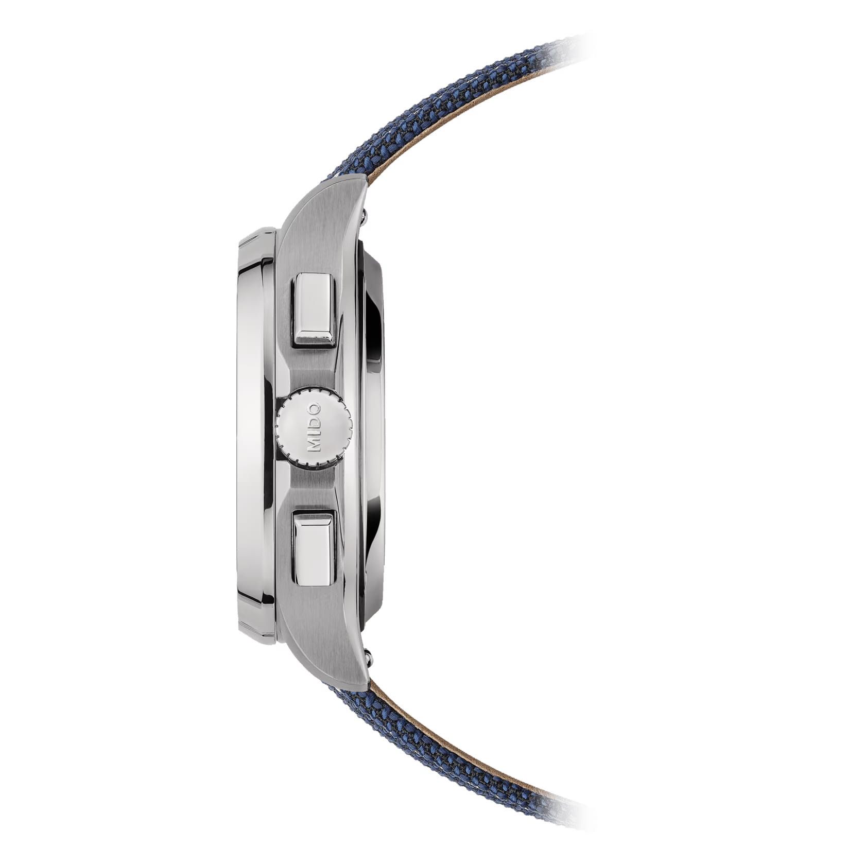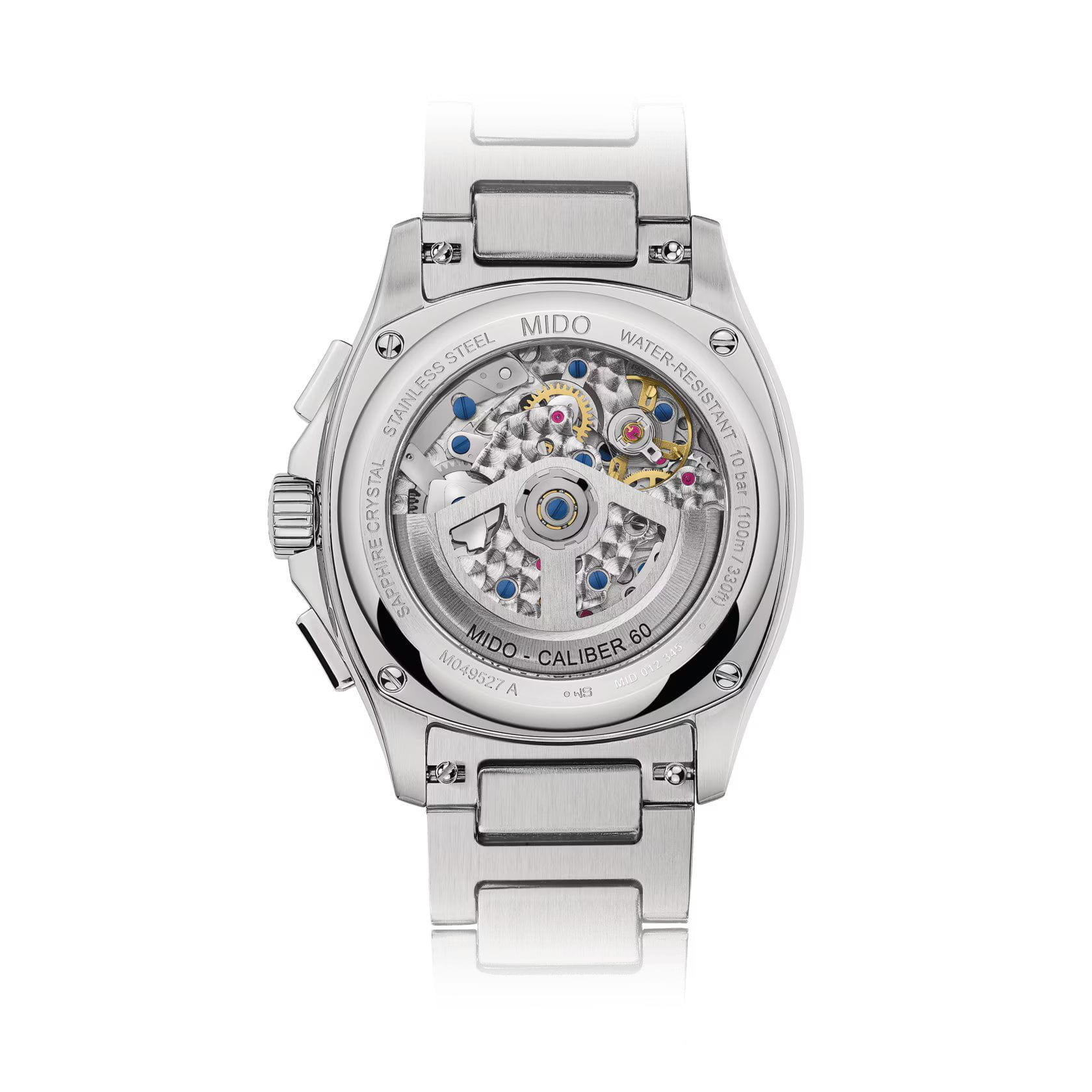 Мужские механические швейцарские часы Mido Multifort TV Chronograph M049.527.11.041.00, механический механизм с высокой точностью. Сапфировое стеклоСапфировое стеклоПрочный и надёжный материал из кристалла сапфира синтетического происхождения, характеризующийся особой твёрдостью и устойчивостью к царапинам и повреждениям. устойчивое к появлению царапин, обладающее высокой прозрачностью. Корпус часов изготовлен из нержавеющей стали.  В механизм внедрена пружина баланса Nivachron™Nivachron™Специально разработанный инновационный сплав Nivachron™ повышает устойчивость часов к воздействию магнитных полей.. Стрелки с люминесцентным покрытиемЛюминесцентное покрытиеПозволяет считывать показания времени в темноте. Производители наносят на стрелки, часовые индексы, безель или поверхность циферблата светонакопительный состав, дающий холодное свечение.. Окошко даты в положении между 4 и 6 часами. Класс водозащиты: 100 метров, позволит плавать, нырять и заниматься другими водными видами спорта. Стальной браслет на раскладной застёжкеРаскладная застёжкаТакой тип застёжки используется только на браслетах из металла. Она никогда не раскрывается полностью, происходит разделение на 2 и более частей. Раскладывающая застёжка снизит вероятность потери часов к минимуму..Часы с функциями хронографаХронографФункция позволяет измерять отрезки времени с особой точностью: часы, минуты, секунды. Верным признаком хронографа является наличие на циферблате 3 дополнительных окошек-счётчиков. и тахиметраТахиметрРазмеченная шкала, располагается на ободке или безеле часов. Тахиметр позволяет рассчитать скорость на определённом участке пути, расстояние измеряется в километрах или милях.. Поставляются с дополнительным ремешком, что обеспечивает еще большую универсальность и комфорт.
