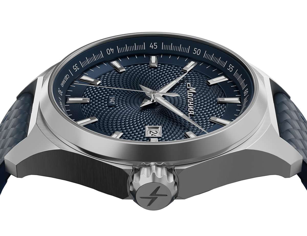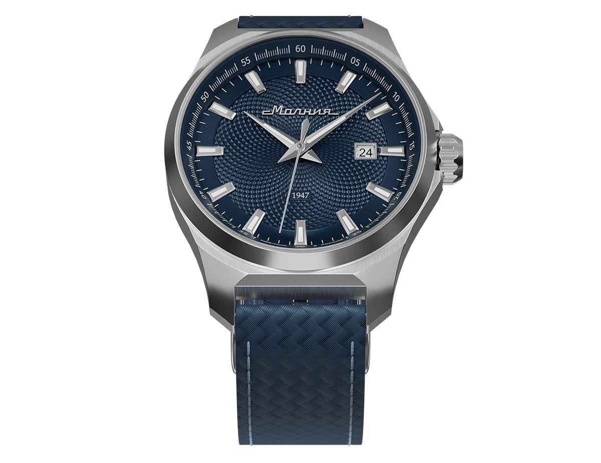 Мужские механические часы с автоподзаводом — это надёжный аксессуар от легендарного бренда «МОЛНИЯ», созданный на Челябинском часовом заводе. Корпус диаметром 42 мм выполнен из нержавеющей стали 316L с зеркальной полировкой. БезельБезельВнешний ободок, закрепляющий стекло. В спортивных часах так называется поворотное кольцо с делениями на циферблате, выполняет роль таймера – замеряет отрезки времени на шкале. Неподвижный безель – элемент декора. Однонаправленно вращающийся безель на дайверских часах позволяет фиксировать моменты погружения и выныривания на поверхность. также выполнен из стали с зеркальной отделкой. Циферблат синего цвета оформлен индексами и стрелками. Окошко даты расположено в положении 3 часов. Стрелки и метки с люминесцентным покрытиемЛюминесцентное покрытиеПозволяет считывать показания времени в темноте. Производители наносят на стрелки, часовые индексы, безель или поверхность циферблата светонакопительный состав, дающий холодное свечение. Super-LumiNova, обеспечивающим хорошую читаемость в темноте. Циферблат защищён сапфировым стекломСапфировое стеклоПрочный и надёжный материал из кристалла сапфира синтетического происхождения, характеризующийся особой твёрдостью и устойчивостью к царапинам и повреждениям. с антибликовым покрытиемАнтибликовое покрытиеСлой оксида металла в 0,13-0,3 микрон, благодаря которому стекло часов не бликует и не отражает свет. Антибликовое покрытие уменьшает отражение света в 10 раз, обеспечивая отличную читаемость показателей циферблата.. Механизм — японский автоматический калибр Miyota 8215 с функцией и запасом хода до 42 часов. Прозрачная задняя крышка позволяет наблюдать за работой механизма с кастомным ротором. Часы оснащены кожаным ремешком синего цвета с подкладкой из фтористого каучука и классической пряжкой, а также системой быстрой замены. Водонепроницаемость 100 м позволяет использовать часы для плавания и повседневного ношения. Идеальный выбор для тех, кто ценит качество, точность и стиль.