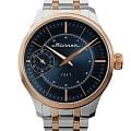 Мужские механические часы с ручным подзаводом — это аксессуар от легендарного бренда «МОЛНИЯ», созданный на Челябинском часовом заводе. Корпус диаметром 41 мм выполнен из нержавеющей стали 316L. БезельБезельВнешний ободок, закрепляющий стекло. В спортивных часах так называется поворотное кольцо с делениями на циферблате, выполняет роль таймера – замеряет отрезки времени на шкале. Неподвижный безель – элемент декора. Однонаправленно вращающийся безель на дайверских часах позволяет фиксировать моменты погружения и выныривания на поверхность. выполнен из стали с PVD-покрытиемPVDУльтратонкое покрытие наносится в технике вакуумного напыления, сочетает в себе нитрид титана особой прочности со слоем золота или оксида хрома. Несёт в себе декоративную или защитную функцию. и зеркальной отделкой. Циферблат синего цвета оформлен индексами и стрелками. Малая секундная стрелка вынесена на позицию 9 часов. Циферблат защищён сапфировым стекломСапфировое стеклоПрочный и надёжный материал из кристалла сапфира синтетического происхождения, характеризующийся особой твёрдостью и устойчивостью к царапинам и повреждениям. толщиной 2 мм. Механизм — мануфактурный калибр 3603, собранный вручную, с запасом хода до 40 часов. Прозрачная задняя крышка позволяет наблюдать за работой механизма. Часы оснащены стальным браслетом с частичным PVD-покрытиемPVDУльтратонкое покрытие наносится в технике вакуумного напыления, сочетает в себе нитрид титана особой прочности со слоем золота или оксида хрома. Несёт в себе декоративную или защитную функцию. под золото и системой быстрой замены на раскладной застёжкеРаскладная застёжкаТакой тип застёжки используется только на браслетах из металла. Она никогда не раскрывается полностью, происходит разделение на 2 и более частей. Раскладывающая застёжка снизит вероятность потери часов к минимуму. типа клипса. Водонепроницаемость 50 м позволяет использовать часы в повседневных условиях. Идеальный выбор для тех, кто ценит российское качество и традиции.