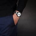 Наручные часы в серебристой цветовой гамме станут отличным вариантом на каждый день, модель идеально впишется в строгий дресс-код. Уникальность заключается в аккумуляторе, необходимом для питания кварцевого механизма, батарейка способна работать сроком до 10 лет. Завинчивающаяся задняя крышка. Заводная головка с системой защиты. Водостойкость до 10 бар. Люминесцентная подсветкаЛюминесцентное покрытиеПозволяет считывать показания времени в темноте. Производители наносят на стрелки, часовые индексы, безель или поверхность циферблата светонакопительный состав, дающий холодное свечение.. Сапфировое стекло устойчиво к возникновению царапин. Корпус и браслет из нержавеющей стали 316L. Индикация числа. Габариты: 47 x 41,3 x 8,8 мм.