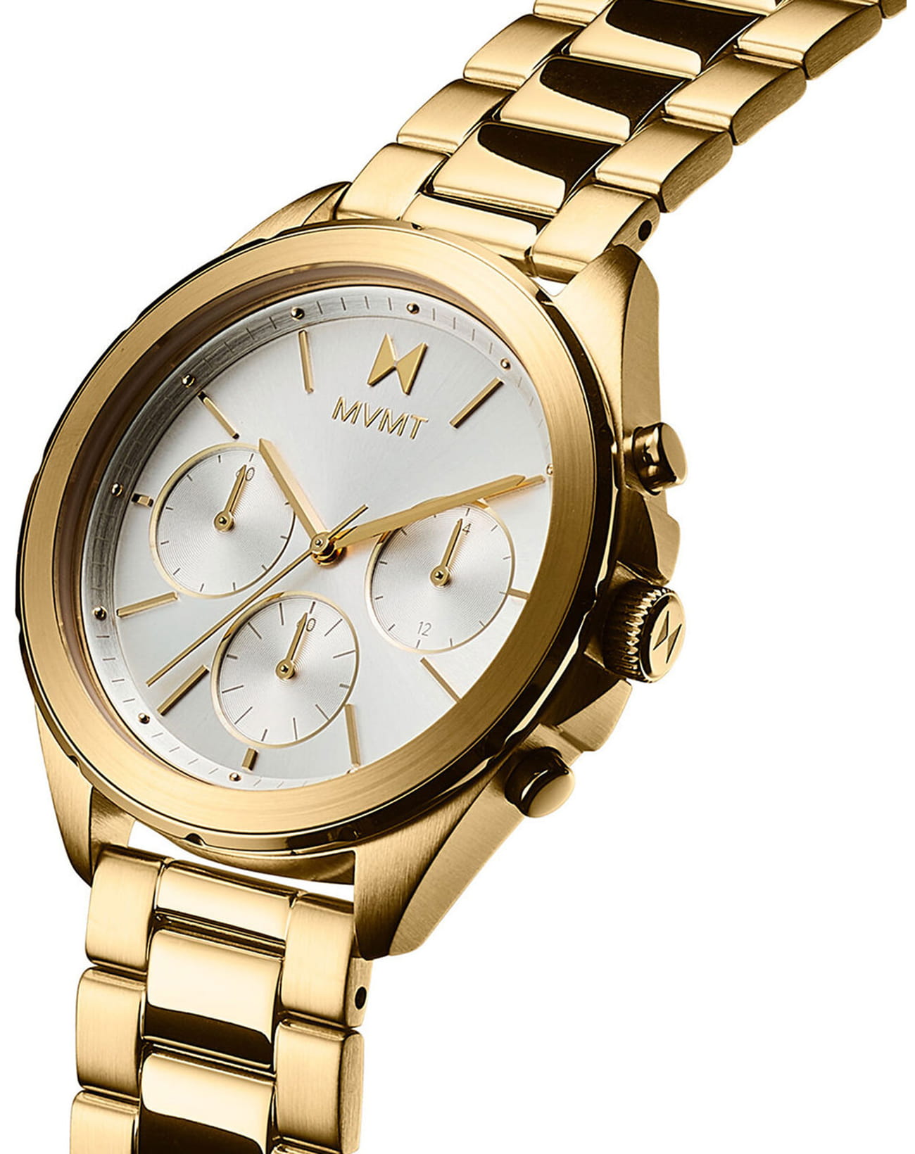 Женские кварцевые часы-хронографХронографФункция позволяет измерять отрезки времени с особой точностью: часы, минуты, секунды. Верным признаком хронографа является наличие на циферблате 3 дополнительных окошек-счётчиков. с секундомеромСекундомерСекундоме́р — прибор, способный измерять интервалы времени с точностью до долей секунды. MVMT 28000128-D – лаконичная красота и изысканная элегантность. Оригинальная модель с классическим оформлением станет превосходным завершением образа, наделив его индивидуальным характером. Корпус выполнен из нержавеющей стали с IP-покрытиемIP-покрытиеМетод ионного напыления. Демонстрирует повышенную устойчивость к истиранию, окислению и химическим веществам. Под воздействием высокого давления и температуры около 1500°C молекулы металла надёжно соединяются с частицами корпуса часов. золотистого цвета, диаметром 39 мм и толщиной 10,4 мм, что обеспечивает долговечность и утончённый внешний вид. Закаленное минеральное стеклоМинеральное стеклоМинеральное стекло представляет собой искусственно выращенный минерал кварца. Такое стекло отличается особой устойчивостью к повреждениям и царапинам. Уступает по некоторым качествам сапфировому стеклу. защищает циферблат от царапин. 12-ти и 24-х часовой формат времени. БезельБезельВнешний ободок, закрепляющий стекло. В спортивных часах так называется поворотное кольцо с делениями на циферблате, выполняет роль таймера – замеряет отрезки времени на шкале. Неподвижный безель – элемент декора. Однонаправленно вращающийся безель на дайверских часах позволяет фиксировать моменты погружения и выныривания на поверхность. декорирован внешним стальным кольцом с насечками. Стальной браслет с IP-покрытиемIP-покрытиеМетод ионного напыления. Демонстрирует повышенную устойчивость к истиранию, окислению и химическим веществам. Под воздействием высокого давления и температуры около 1500°C молекулы металла надёжно соединяются с частицами корпуса часов. на раскладной застежке с фиксаторомРаскладная застёжкаТакой тип застёжки используется только на браслетах из металла. Она никогда не раскрывается полностью, происходит разделение на 2 и более частей. Раскладывающая застёжка снизит вероятность потери часов к минимуму. обеспечивает комфортное ношение. Водозащита 100 метров позволит плавать, нырять и заниматься другими водными видами спорта. Женский аксессуар, который покорит вас своим элегантным дизайном. Эти часы станут изысканным акцентом в вашем образе, подчеркивая вашу утонченность и хороший вкус.