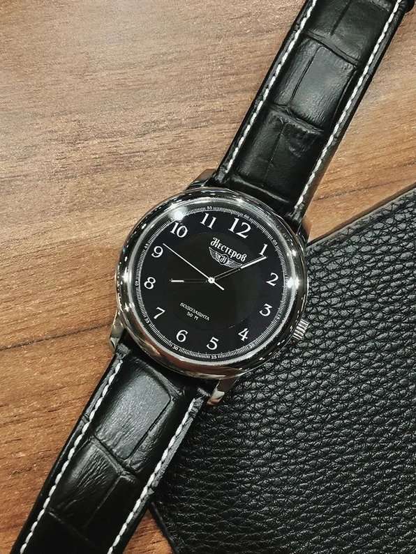 Модель Нестеров H0282B02-01E — это гармоничное сочетание классического дизайна и надёжности, вдохновлённое авиационной тематикой. Корпус диаметром 44 мм выполнен из нержавеющей стали, подчёркивая прочность и элегантность конструкции. Чёрный циферблат с арабскими цифрами и стрелками, покрытыми люминесцентным покрытиемЛюминесцентное покрытиеПозволяет считывать показания времени в темноте. Производители наносят на стрелки, часовые индексы, безель или поверхность циферблата светонакопительный состав, дающий холодное свечение., обеспечивает отличную читаемость в любых условиях.