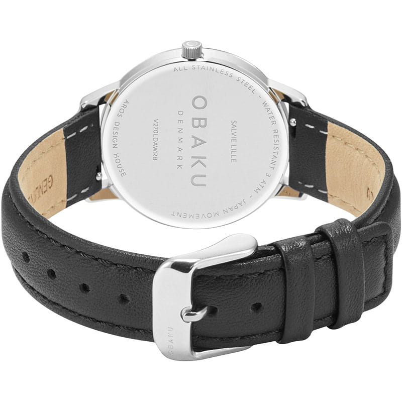 Женские кварцевые часы с минеральным стекломМинеральное стеклоМинеральное стекло представляет собой искусственно выращенный минерал кварца. Такое стекло отличается особой устойчивостью к повреждениям и царапинам. Уступает по некоторым качествам сапфировому стеклу. Obaku Salvie V270LDAWRB, кварцевый механизм с высокой точностью. Класс водозащиты: 30 метров, позволит защитить корпус от случайных брызг или капель дождя. Корпус часов изготовлен из стали. Апертура даты в позиции 6 часов. Кожаный ремешок на стандартной застёжке. БезельБезельВнешний ободок, закрепляющий стекло. В спортивных часах так называется поворотное кольцо с делениями на циферблате, выполняет роль таймера – замеряет отрезки времени на шкале. Неподвижный безель – элемент декора. Однонаправленно вращающийся безель на дайверских часах позволяет фиксировать моменты погружения и выныривания на поверхность. с IP-покрытиемIP-покрытиеМетод ионного напыления. Демонстрирует повышенную устойчивость к истиранию, окислению и химическим веществам. Под воздействием высокого давления и температуры около 1500°C молекулы металла надёжно соединяются с частицами корпуса часов..