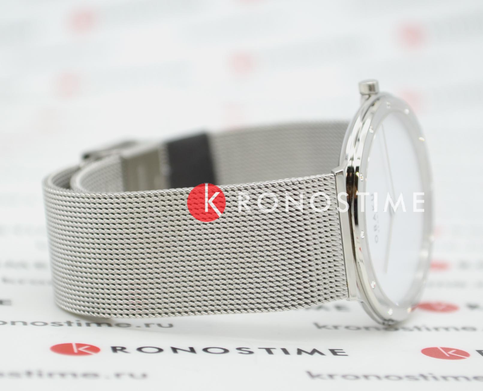 Женские наручные кварцевые часы с сапфировым стекломСапфировое стеклоПрочный и надёжный материал из кристалла сапфира синтетического происхождения, характеризующийся особой твёрдостью и устойчивостью к царапинам и повреждениям. Obaku Mesh V285LECWMC, кварцевый механизм с высокой точностью. Класс водозащиты: 30 метров, позволит защитить корпус от случайных брызг или капель дождя. Корпус часов изготовлен из стали. Стальной браслет выполнен в технике миланского плетения на раскладной застёжкеРаскладная застёжкаТакой тип застёжки используется только на браслетах из металла. Она никогда не раскрывается полностью, происходит разделение на 2 и более частей. Раскладывающая застёжка снизит вероятность потери часов к минимуму., ширина 18 мм. БезельБезельВнешний ободок, закрепляющий стекло. В спортивных часах так называется поворотное кольцо с делениями на циферблате, выполняет роль таймера – замеряет отрезки времени на шкале. Неподвижный безель – элемент декора. Однонаправленно вращающийся безель на дайверских часах позволяет фиксировать моменты погружения и выныривания на поверхность. инкрустирован кристаллами.
