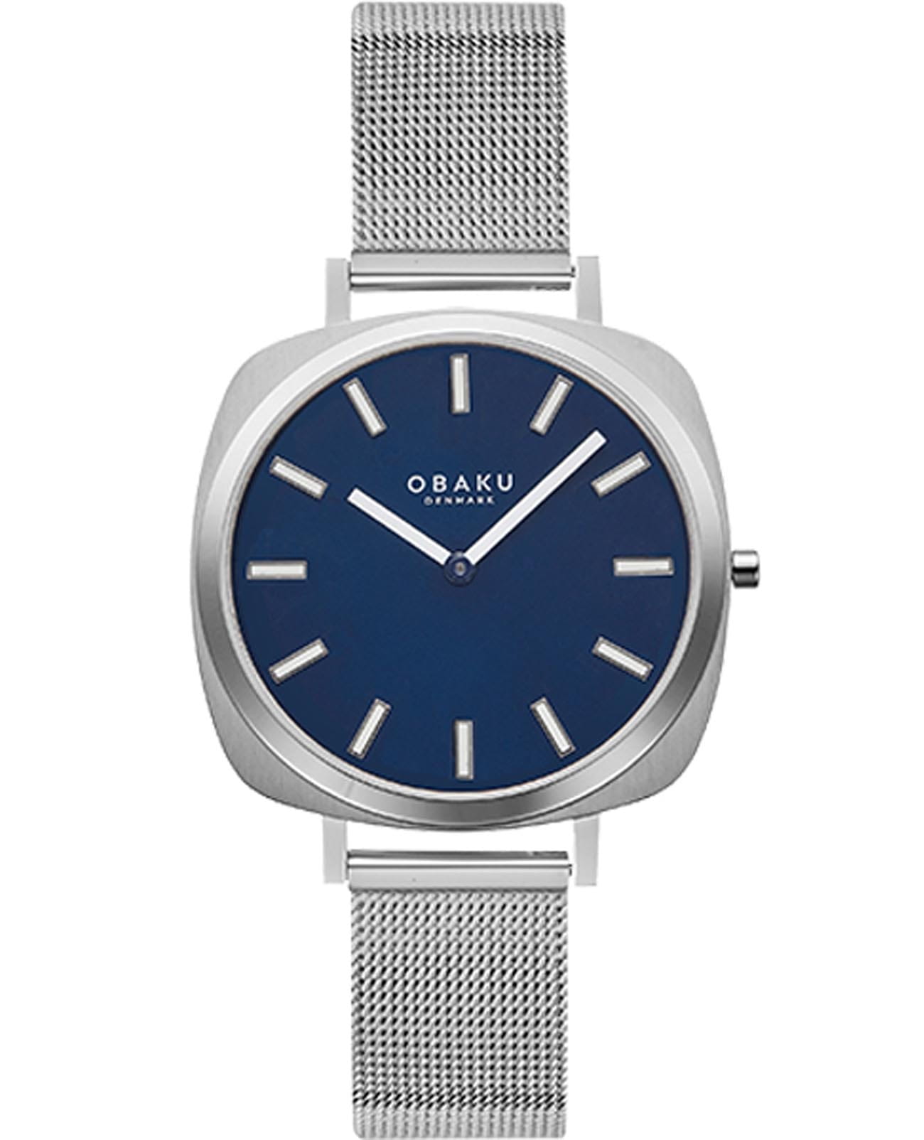 Obaku Mesh V296LXCLMC – элегантные женские часы, сочетающие минималистичный датский дизайн и высокую функциональность. Корпус размером 32 × 38,5 мм выполнен из нержавеющей стали с PVD-покрытиемPVDУльтратонкое покрытие наносится в технике вакуумного напыления, сочетает в себе нитрид титана особой прочности со слоем золота или оксида хрома. Несёт в себе декоративную или защитную функцию. в синем цвете, что придаёт модели современный вид и обеспечивает долговечность. Синий циферблат с метками и стрелками, покрытыми люминесцентным покрытиемЛюминесцентное покрытиеПозволяет считывать показания времени в темноте. Производители наносят на стрелки, часовые индексы, безель или поверхность циферблата светонакопительный состав, дающий холодное свечение., гарантирует отличную читаемость в любых условиях, а его поверхность защищена с минеральным стекломМинеральное стеклоМинеральное стекло представляет собой искусственно выращенный минерал кварца. Такое стекло отличается особой устойчивостью к повреждениям и царапинам. Уступает по некоторым качествам сапфировому стеклу., устойчивым к царапинам. Часы оснащены кварцевым механизмом, обеспечивающим точный ход. Браслет из нержавеющей стали с сетчатой структурой дополнен на раскладном замкеРаскладной замокДанный вариант застежки используется только на часах с металлическим браслетом. Отличительная особенность такого крепления в том, что длина браслета становится универсальной и вы можете самостоятельно отрегулировать нужный вам размер – застежка просто двигается по браслету часов., обеспечивающей удобную фиксацию на запястье. Водонепроницаемость 30 метров (3 ATM) защищает модель от случайных брызг, делая её отличным выбором для повседневного использования.