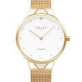 Женские наручные часы Obaku Diamond V302LXGWMG кварцевый механизм с высокой точностью, настоящее воплощение элегантности и утонченности. Их дизайн завораживает с первого взгляда, сочетая в себе классическую лаконичность и современные акценты. Сапфировое стеклоСапфировое стеклоПрочный и надёжный материал из кристалла сапфира синтетического происхождения, характеризующийся особой твёрдостью и устойчивостью к царапинам и повреждениям. защищает циферблат от царапин, обеспечивает отличную читаемость при любом освещении и устойчивое к мелким механическим повреждениям. Корпус выполнен из нержавеющей стали с IP-покрытиемIP-покрытиеМетод ионного напыления. Демонстрирует повышенную устойчивость к истиранию, окислению и химическим веществам. Под воздействием высокого давления и температуры около 1500°C молекулы металла надёжно соединяются с частицами корпуса часов. золотистого цвета идеально сбалансирован и элегантен. Класс водозащиты: 30 метров позволит защитить корпус от случайных брызг или капель дождя. Стальной браслет миланского плетения на раскладном замкеРаскладной замокДанный вариант застежки используется только на часах с металлическим браслетом. Отличительная особенность такого крепления в том, что длина браслета становится универсальной и вы можете самостоятельно отрегулировать нужный вам размер – застежка просто двигается по браслету часов. с IP-покрытиемIP-покрытиеМетод ионного напыления. Демонстрирует повышенную устойчивость к истиранию, окислению и химическим веществам. Под воздействием высокого давления и температуры около 1500°C молекулы металла надёжно соединяются с частицами корпуса часов.. Часы украшены бриллиантом на 12 часов, метки в виде точек. Центральные часовая и минутная стрелки. Obaku Diamond – это не просто аксессуар, это заявление о вашем безупречном вкусе и стремлении к совершенству.