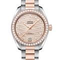 Часы Omega Seamaster Aqua Terra выполнены в симметричном корпусе из нержавеющей стали и 18K Sedna™ золота с завинчивающейся задней крышкой, украшенной волновым узором. Циферблат золотистого цвета дополнен окошком даты на 6 часах и 11 индексами в виде маркиз, установленными по центру. Часовые стрелки и секундная стрелка выполнены из 18K Sedna™ золота с алмазной полировкой для высокой контрастности. Калибр Omega 8800 сертифицирован как Master Chronometer — гарантия высочайшей точности и устойчивости к магнитным полям. Запас хода составляет 55 часов. Защиту циферблата обеспечивает сапфировое стеклоСапфировое стеклоПрочный и надёжный материал из кристалла сапфира синтетического происхождения, характеризующийся особой твёрдостью и устойчивостью к царапинам и повреждениям. с антибликовым покрытиемАнтибликовое покрытиеСлой оксида металла в 0,13-0,3 микрон, благодаря которому стекло часов не бликует и не отражает свет. Антибликовое покрытие уменьшает отражение света в 10 раз, обеспечивая отличную читаемость показателей циферблата. с обеих сторон. Водозащита позволяет использовать часы в воде без риска повреждения. Часы установлены на браслет из нержавеющей стали и 18K Sedna™ золота с застёжкой-бабочкой с кнопкамиЗастёжка "бабочка"Такой вид застёжки дополняется предохранителями, помогающими избежать случайного раскрытия браслета. Обладают изящным исполнением. . Вес модели — около 108 грамм. Это сочетание премиального качества, технологичности и классического дизайна.