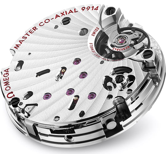 эффектно контрастируют с черным PVD-покрытиемPVDУльтратонкое покрытие наносится в технике вакуумного напыления, сочетает в себе нитрид титана особой прочности со слоем золота или оксида хрома. Несёт в себе декоративную или защитную функцию. метеоритной поверхности, создавая впечатляющую визуальную глубину. Уникальный указатель фаз Луны на "6 часах" с изображениями из полированного метеорита демонстрирует оба полушария ночного светила. Черный керамический безельБезельВнешний ободок, закрепляющий стекло. В спортивных часах так называется поворотное кольцо с делениями на циферблате, выполняет роль таймера – замеряет отрезки времени на шкале. Неподвижный безель – элемент декора. Однонаправленно вращающийся безель на дайверских часах позволяет фиксировать моменты погружения и выныривания на поверхность. с тахиметрической шкалойТахиметрРазмеченная шкала, располагается на ободке или безеле часов. Тахиметр позволяет рассчитать скорость на определённом участке пути, расстояние измеряется в километрах или милях. из белой эмали обрамляет корпус из нержавеющей стали с полированными и сатинированными поверхностями. Браслет с фирменной системой регулировки и калибр OMEGA Co-Axial Master Chronometer 9914 с хронографомХронографФункция позволяет измерять отрезки времени с особой точностью: часы, минуты, секунды. Верным признаком хронографа является наличие на циферблате 3 дополнительных окошек-счётчиков., сертифицированный METAS, делают эти часы истинным воплощением космического наследия OMEGA.