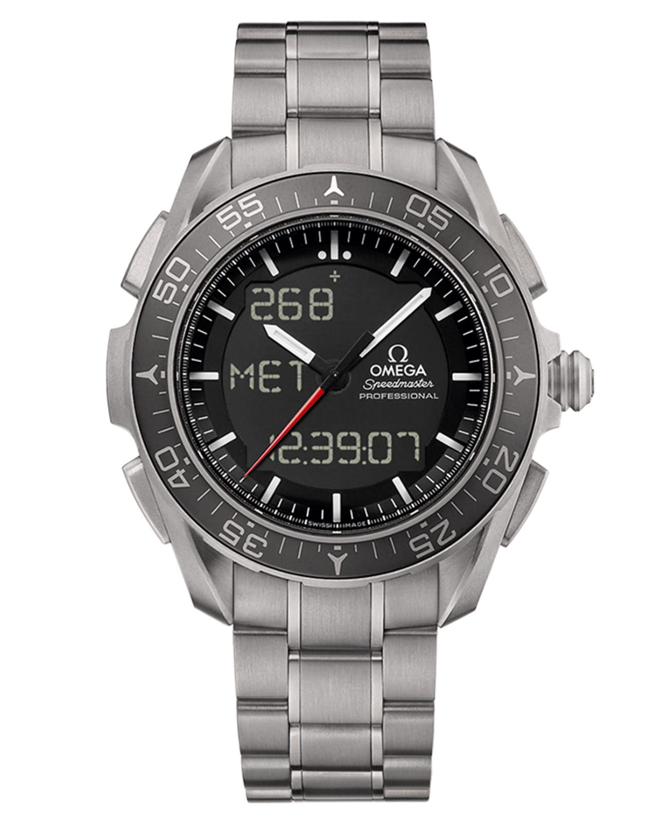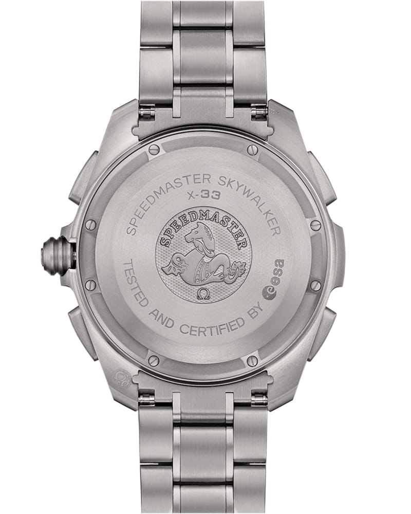 Speedmaster Skywalker X-33 - это космический хронограф нового поколения, где 45-мм титановый корпус Grade 2 встречается с черным керамическим безелемБезельВнешний ободок, закрепляющий стекло. В спортивных часах так называется поворотное кольцо с делениями на циферблате, выполняет роль таймера – замеряет отрезки времени на шкале. Неподвижный безель – элемент декора. Однонаправленно вращающийся безель на дайверских часах позволяет фиксировать моменты погружения и выныривания на поверхность., создавая идеальный симбиоз прочности и высоких технологий. Черный циферблат с ЖК-дисплеем контрастирует с браслетом из титана Grade 2 и Grade 5, демонстрируя безупречное сочетание функциональности и эргономики. В сердце часов бьется многофункциональный кварцевый механизм OMEGA калибра 5619 с хронографомХронографФункция позволяет измерять отрезки времени с особой точностью: часы, минуты, секунды. Верным признаком хронографа является наличие на циферблате 3 дополнительных окошек-счётчиков., продолжая легендарные традиции точности Speedmaster в экстремальных условиях - от космических просторов до океанских глубин. Эти часы не просто показывают время - они становятся надежным спутником в самых смелых исследовательских миссиях.